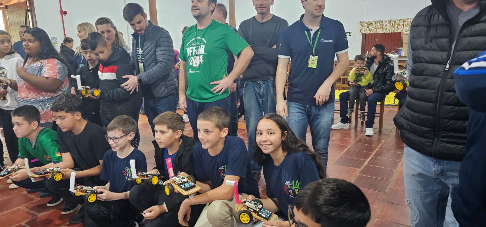 Foto: crianças participam de competição de robótica promovida pelo IFFar