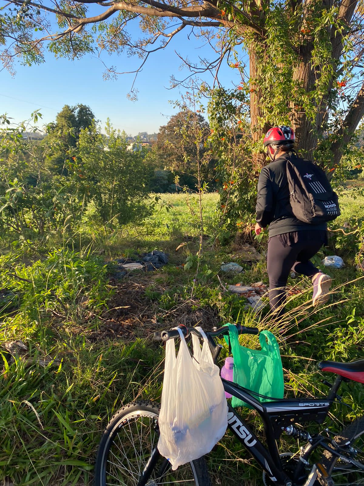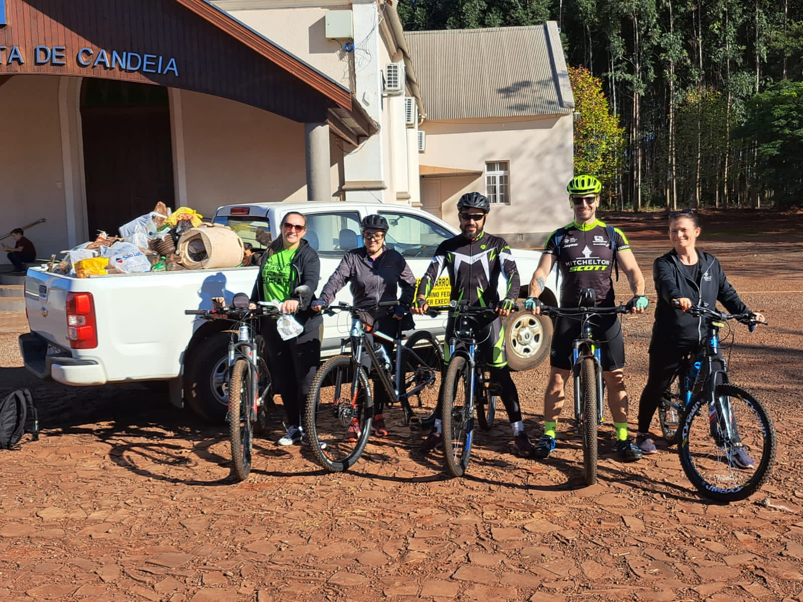 Foto: participantes do projeto Pedal Ambiental recolhem resíduos em Santa Rosa