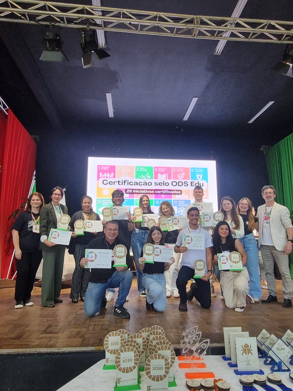 Durante a abertura da MEPT, 28 projetos do IFFar foram reconhecidos com o Selo ODS de Educação — certificação que destaca ações alinhadas aos Objetivos de Desenvolvimento Sustentável (ODS) da Organização das Nações Unidas.
