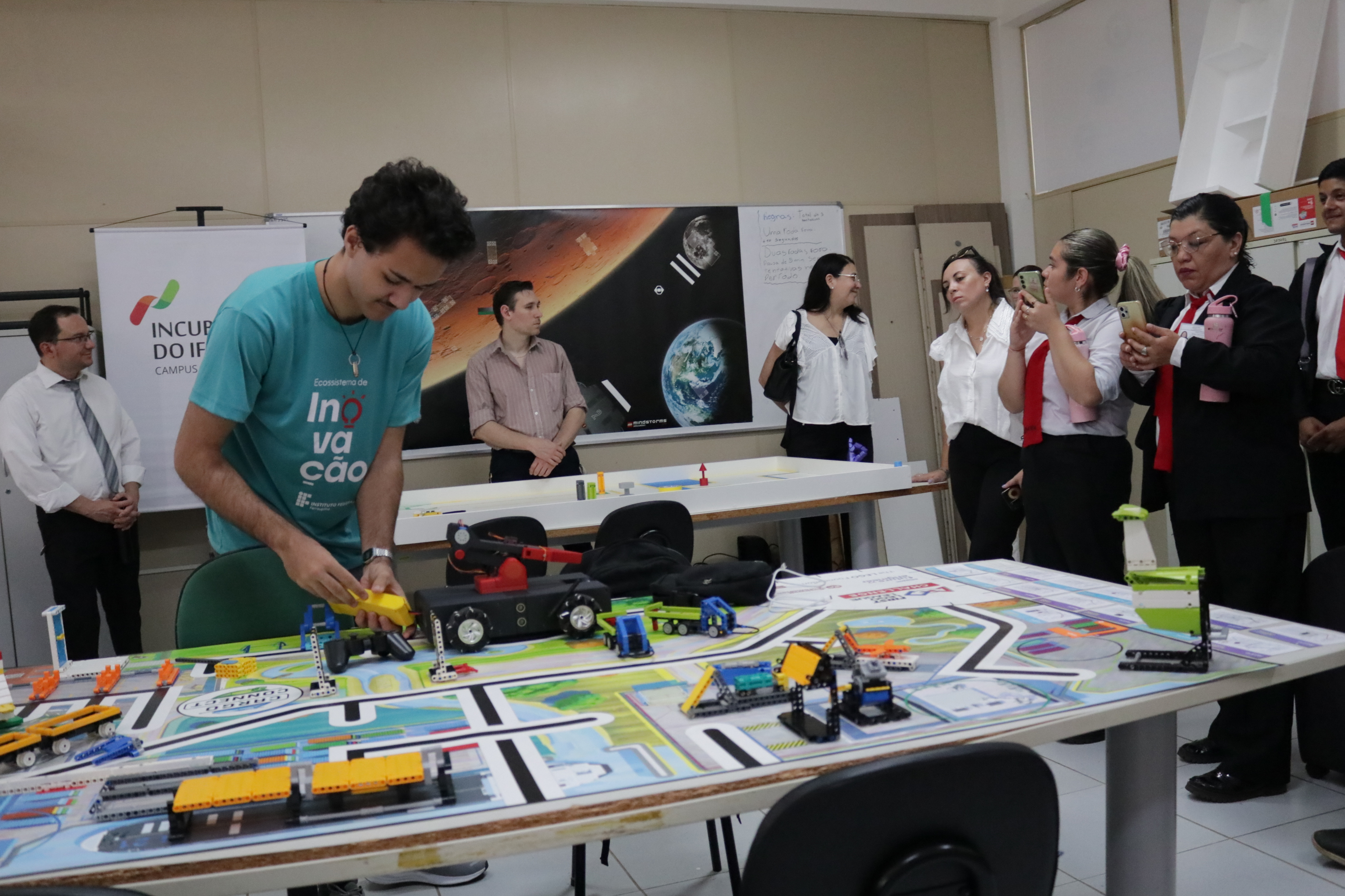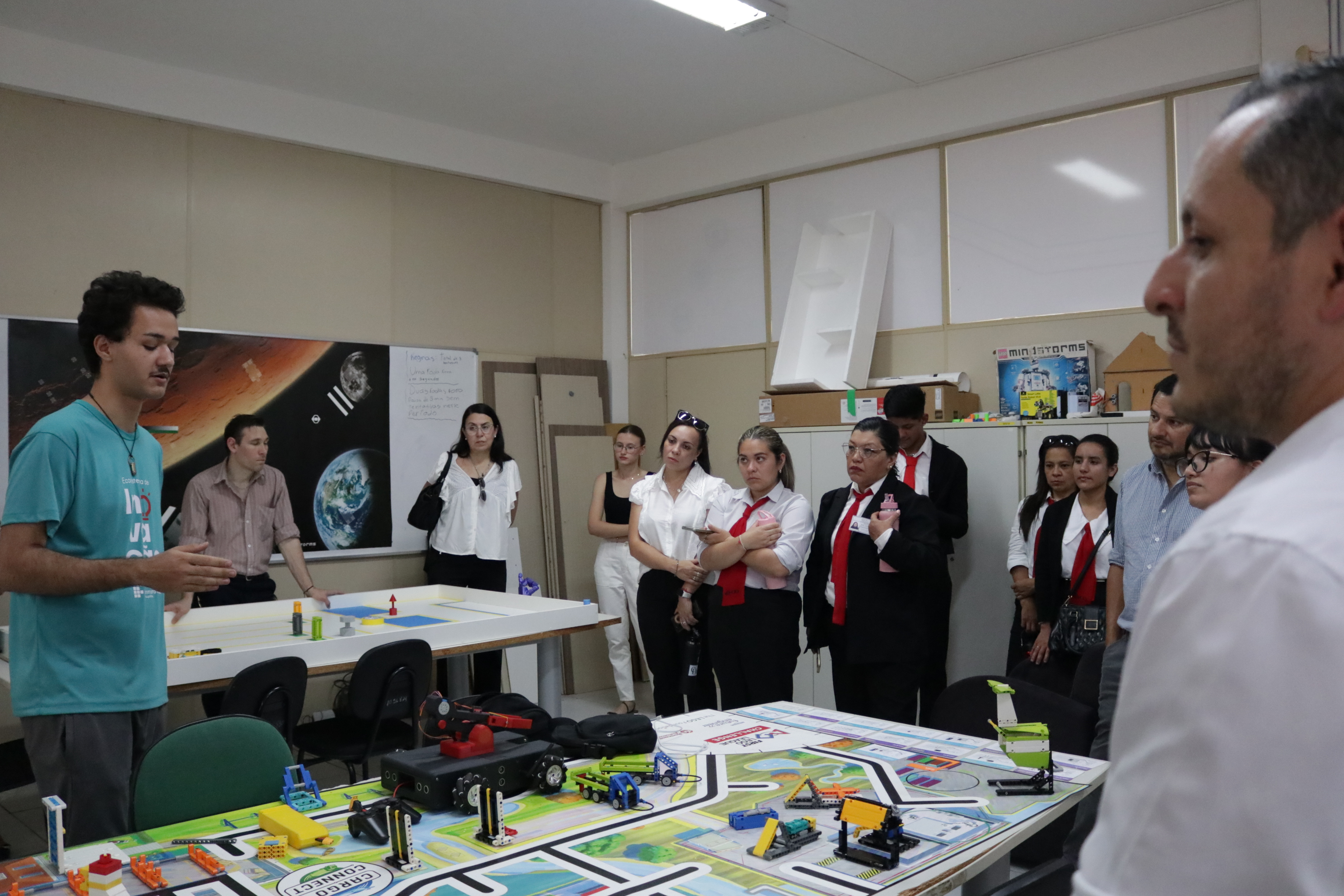 A recepção ocorreu no Lab IF Maker, onde o coordenador do laboratório, Prof. Dr. Bruno Siqueira, acompanhado pelos alunos bolsistas Fernando Ponce Santini e Mariana Dalosto, apresentou os projetos desenvolvidos no espaço, as tecnologias disponíveis e as diversas possibilidades de criação que o ambiente oferece. Os visitantes puderam conhecer impressoras 3D, equipamentos de prototipagem, além de soluções inovadoras e iniciativas conduzidas pelo laboratório.
