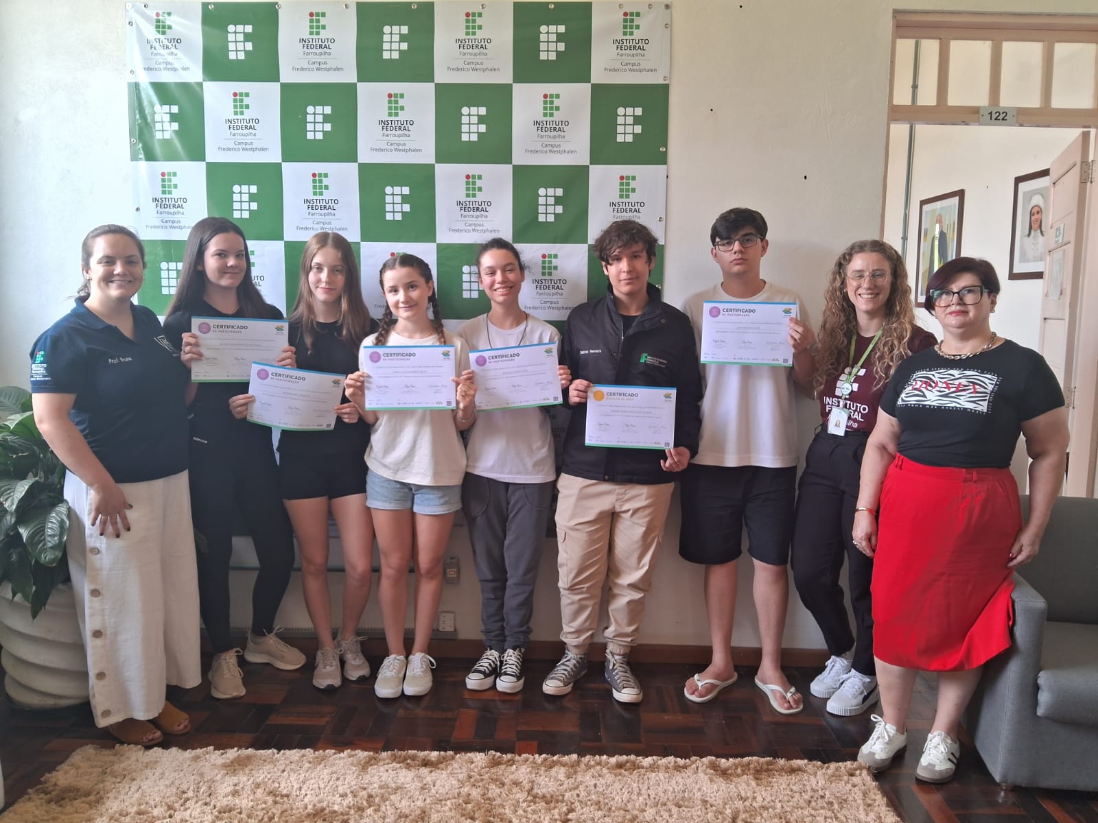 No dia 31 de outubro de 2025, foram divulgados os resultados definitivos da Olimpíada do Tesouro Direto de Educação Financeira (OLITEF), realizada pelo Tesouro Nacional, pelo Tesouro Direto e pela Brasil, Bolsa, Balcão (B³ – a Bolsa de Valores do Brasil), com organização da UpMat Educacional. A Olimpíada que tem como objetivo promover a educação financeira e incentivar hábitos de investimento consciente entre os jovens, vem consolidando-se como uma das principais iniciativas nacionais voltadas ao tema. O Instituto Federal Farroupilha – Campus Frederico Westphalen participa pelo 2º ano consecutivo da Olimpíada e obteve excelente desempenho na competição: dois estudantes conquistaram medalhas e se destacaram entre milhares de participantes de todo o país. No ano de 2026, o campus pretende participar novamente da olimpíada, ampliando a participação com uma preparação ainda mais sólida, através da oferta de projetos voltados aos estudos e à divulgação da OLITEF entre a comunidade acadêmica, ampliando o alcance da educação financeira no ambiente escolar. Na terça, 02 de dezembro de 2024, a diretora geral Silvana Alves Pedrozo e as professoras Bruna Larissa Cecco (responsável pela OLITEF no IFFar-FW) e Denise Espich (coordenadora de projeto Educação Financeira: autonomia e cidadania para jovens) entregaram os Certificados de Participação aos estudantes Cayme Amanda Flach, Misael Samuel Alves, Davi Gervasoni Rentz, Eduardo Silva de Souza, Emily Doring Azevedo, Luís Eduardo Albarello de Jesus, Luiz Fernando Ues, Manuela Peiter Claro, Maria Clara Balbinot Meoti, Mariana May Argenta, Maysa Deliberalli, Milena Franciskievicz de Souza, Stefany Eduarda Sarmento e Ysabelle Vitória Segatto da Silva. Também, receberam os certificados os estudantes Laura de Cristo (medalha de bronze) e Gabriel Renato de Sousa Silveira (medalha de ouro). O Campus Frederico Westphalen parabeniza os estudantes pela participação e evidencia que a conquista dos alunos medalhistas e o engajamento de toda a equipe reforçam o compromisso da instituição com a formação integral, crítica e cidadã, estimulando os estudantes a aplicar o conhecimento de forma responsável e transformadora.