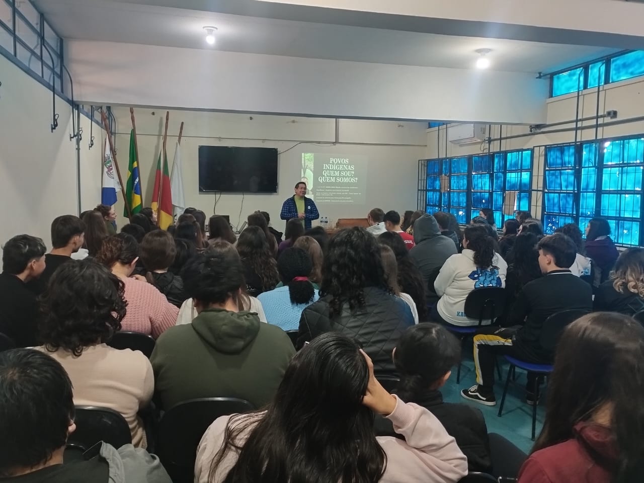 Nos dias 06 e 13 de agosto de 2025, o NEABI – Campus Jaguari (Núcleo de Estudos Afrobrasileiros e Indígenas) promoveu uma palestra relacionada a data de 09 de agosto, instituída pela ONU como o Dia Internacional dos Povos Indígenas.