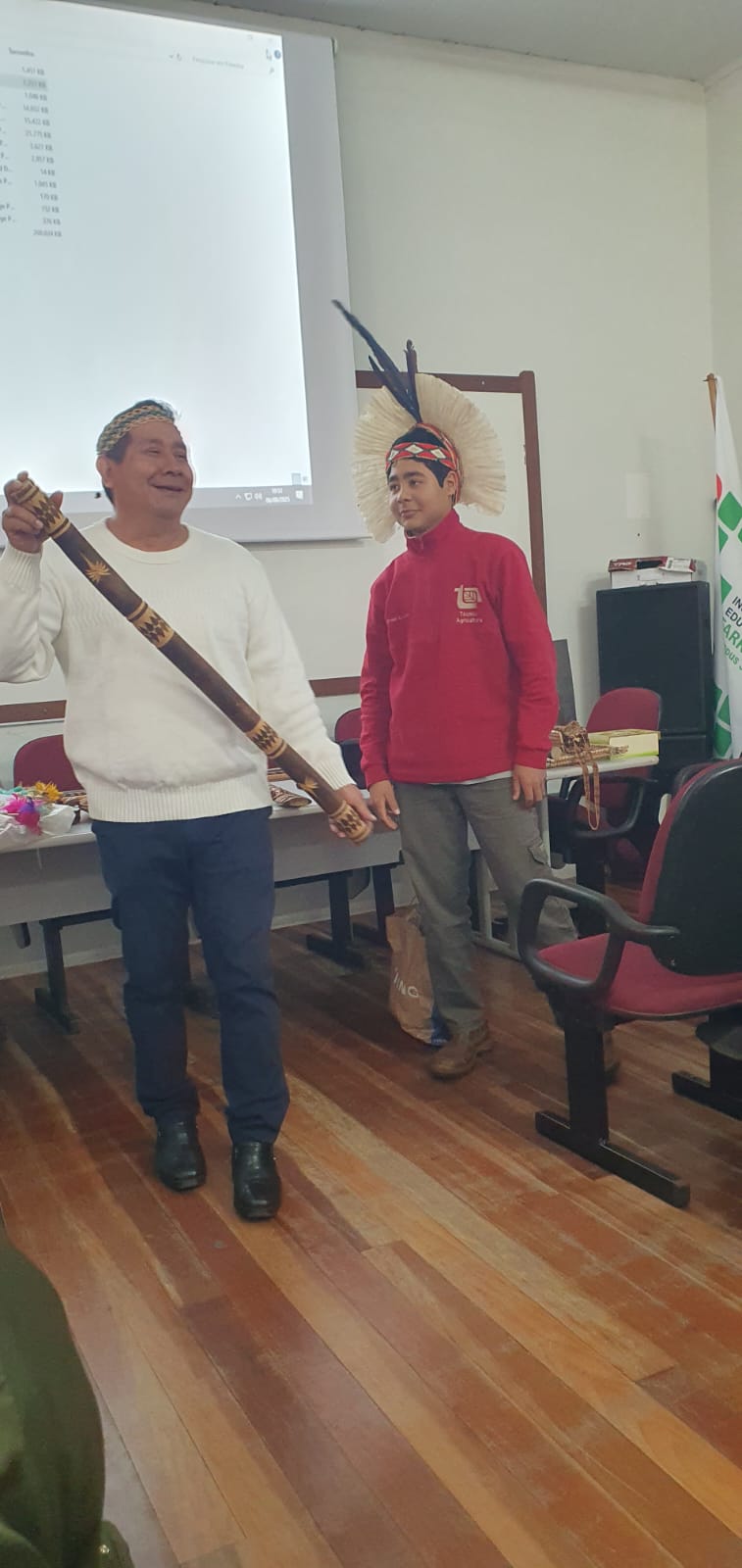 Nestas oportunidades, recebemos a visita do indígena Valdélio Izidório Messias, da etnia Macuxi. Valdélio é nascido na Terra Indígena Raposa Serra do Sol, município de Pacaraima -RO, e atualmente reside em Santiago, onde faz parte do Conselho Municipal de Promoção da Igualdade Étnico-Racial – COMPIER, representando os povos originários.