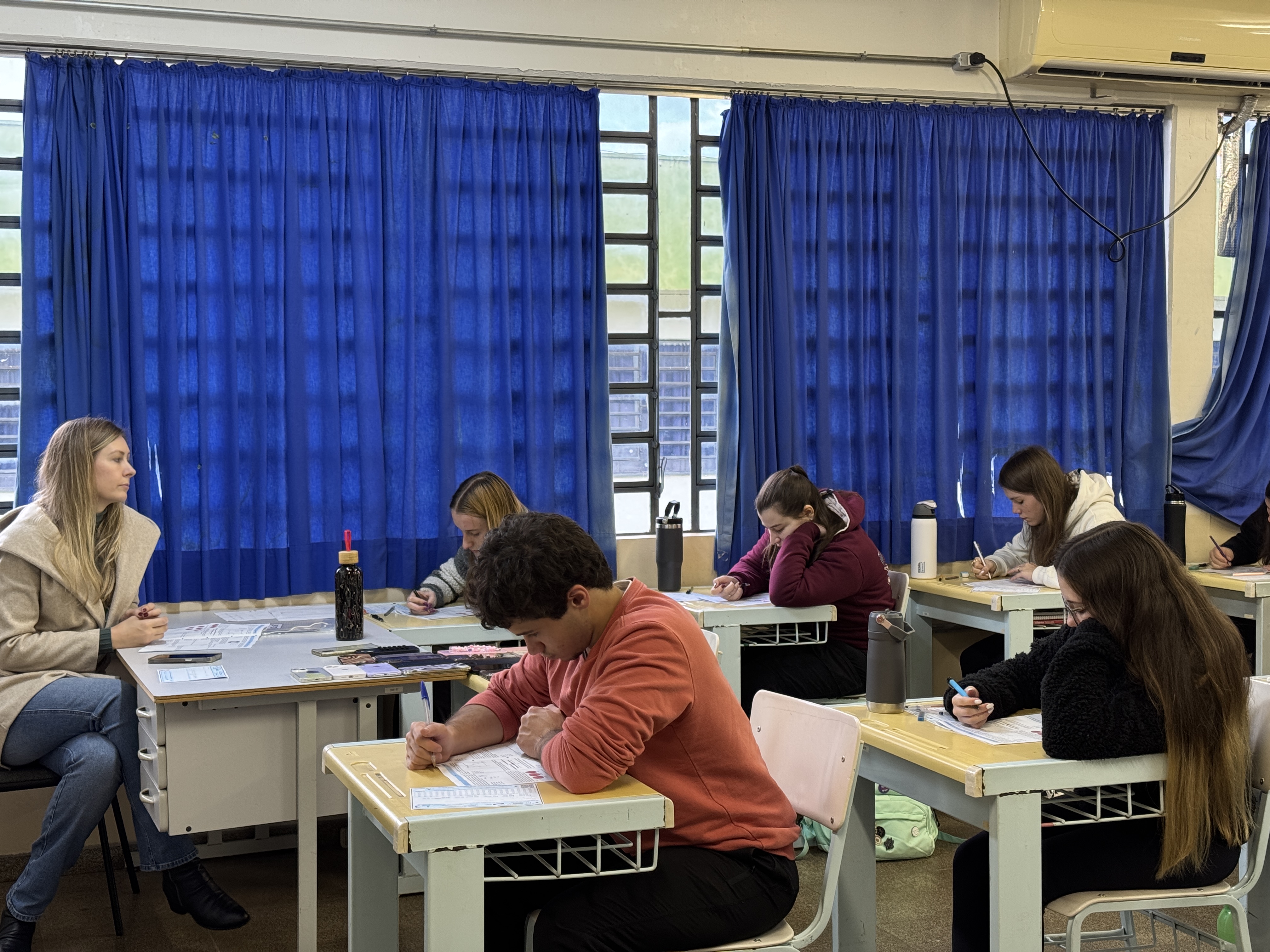 Todas as turmas dos cursos técnicos integrados ao Ensino Médio do IFFar - Campus Panambi realizaram a prova, totalizando 450 alunos participantes.