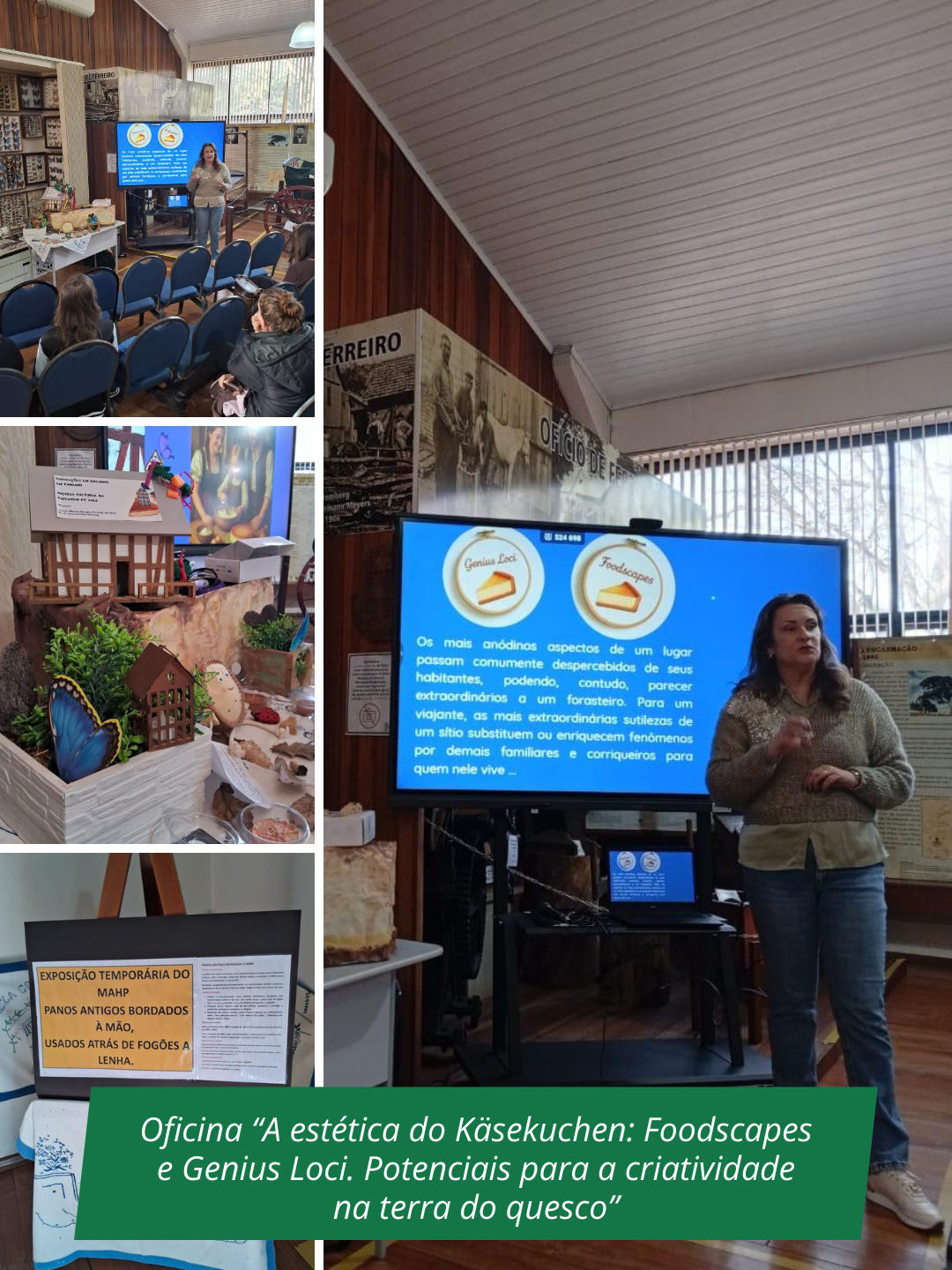 A professora Josiane Pillar Hinning, arquiteta e docente do curso técnico em Edificações, ministrou a oficina “A estética do Käsekuchen: Foodscapes e Genius Loci. Potenciais para a criatividade na terra do queijo”. A atividade faz parte de seu projeto de extensão, que tem como objetivo conectar agentes culturais, empresas e artistas, fortalecendo a rede de Economia Criativa no município.