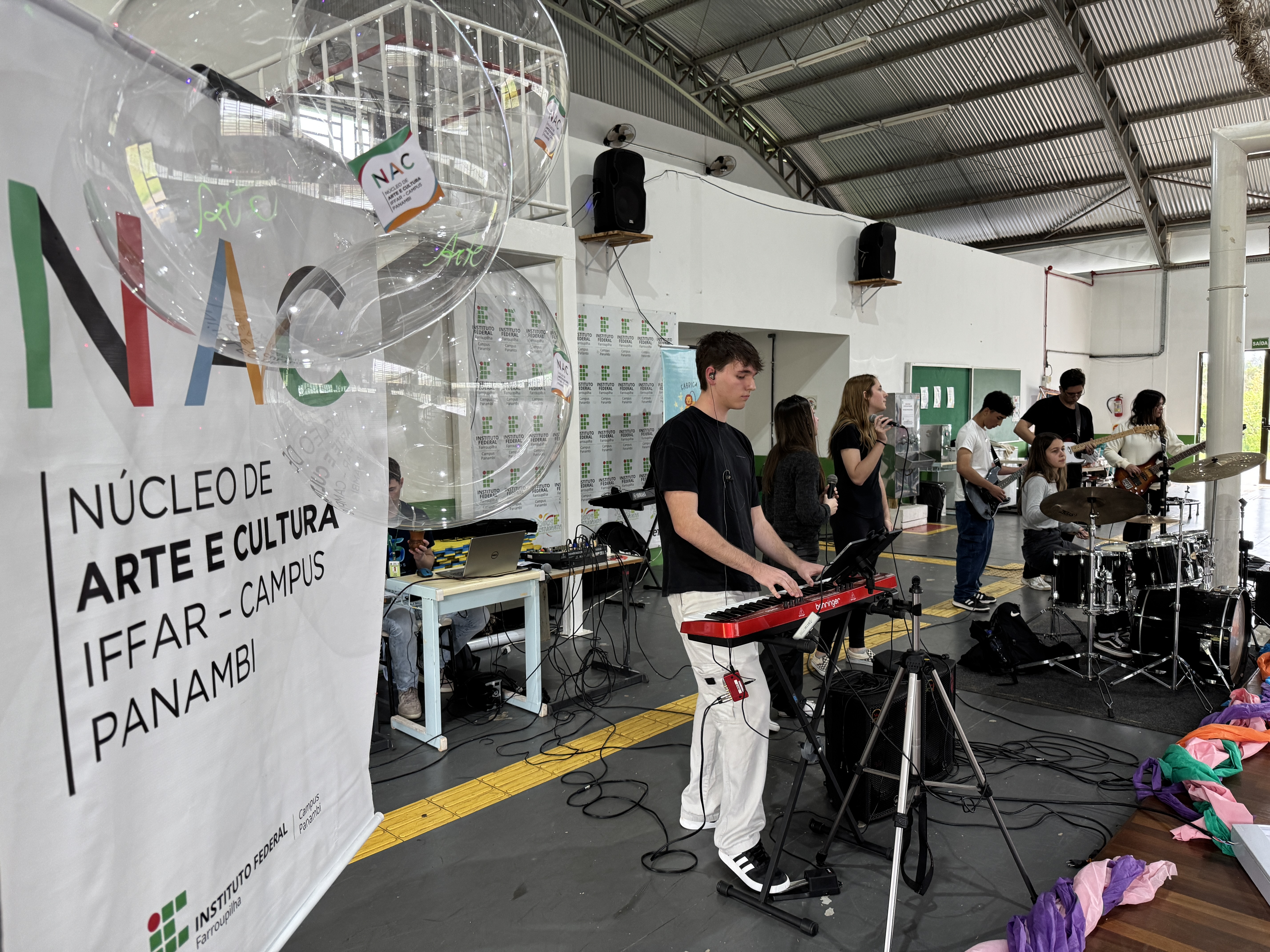 Na segunda-feira, 15 de setembro, o IFFar – Campus Panambi promoveu a XIII Mostra Cultural, um evento que mobilizou estudantes e servidores em apresentações artístico-culturais, produções audiovisuais e exposições. Realizada nos turnos da tarde e da noite, a Mostra contou com 44 trabalhos inscritos, que encantaram o público e sensibilizaram a comunidade acadêmica pela diversidade de expressões artísticas.