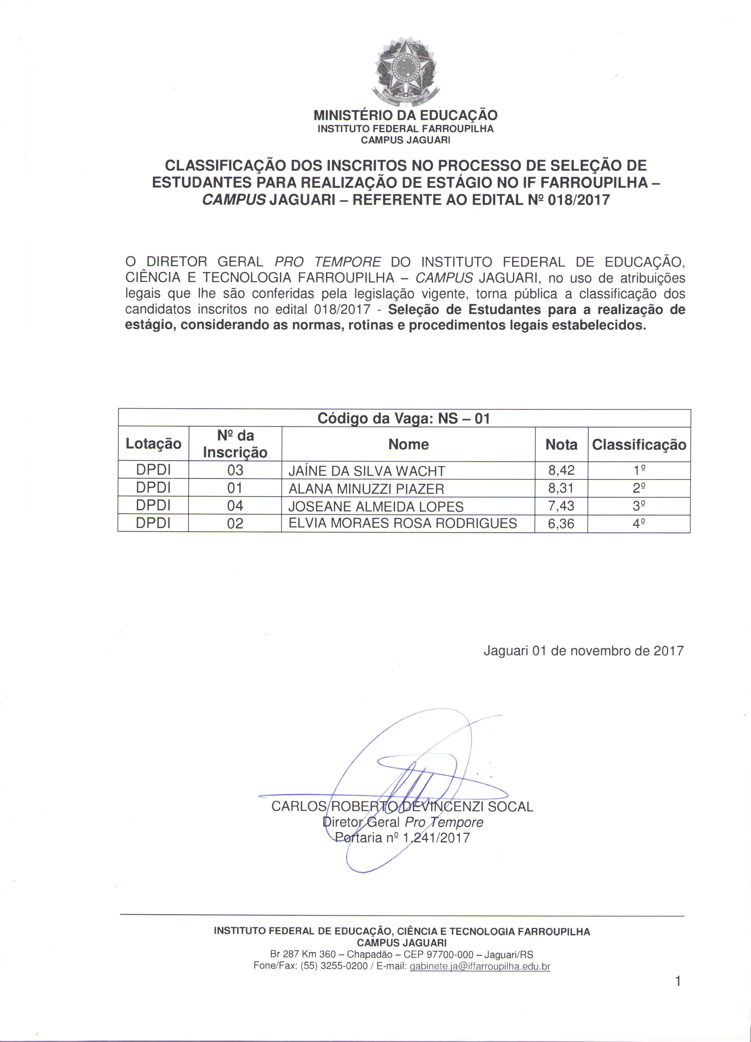 Edital 18/2017 - Seleção de estudantes para a realização de estágio no Instituto Federal Farroupilha - Campus Jaguari