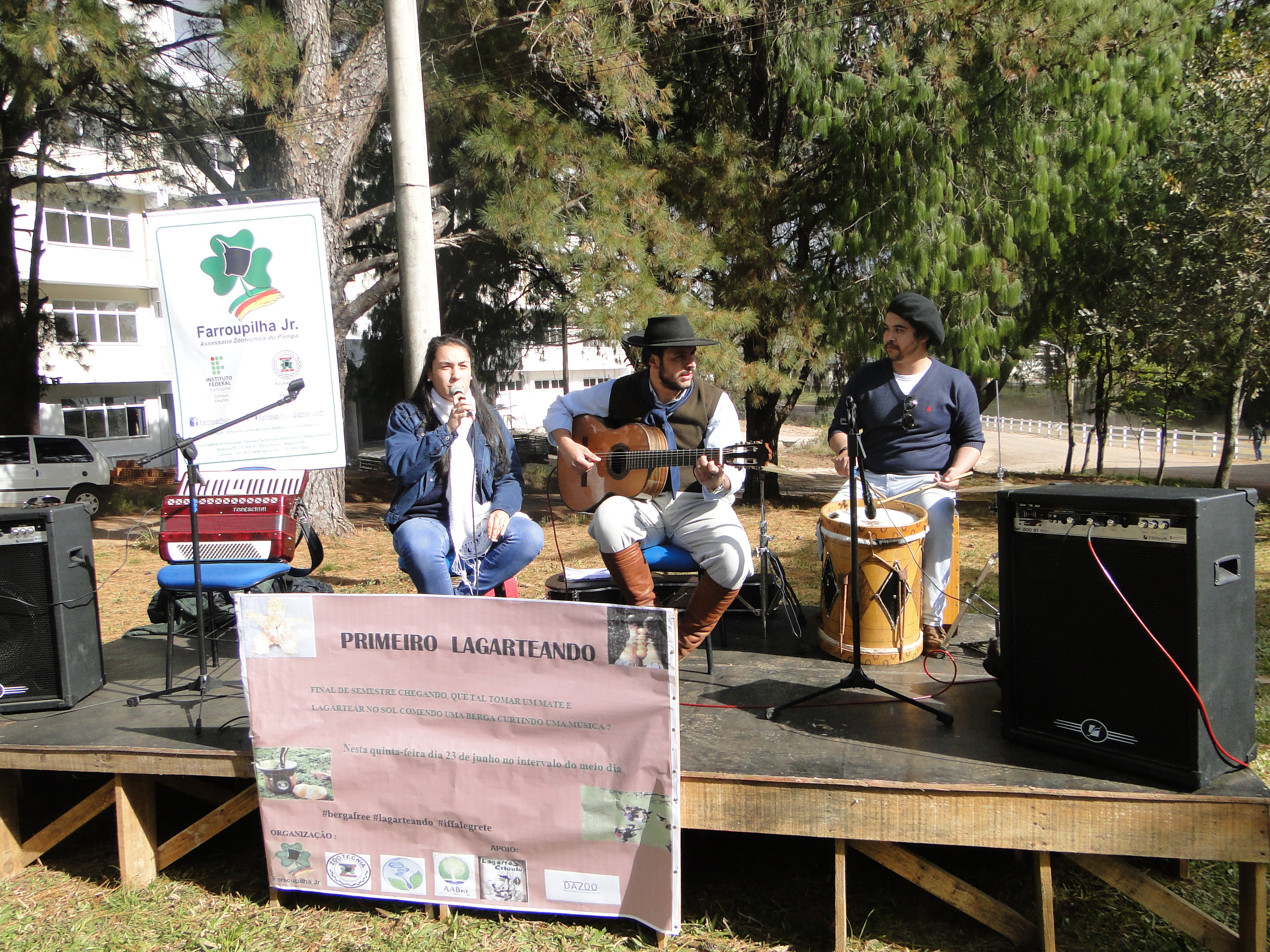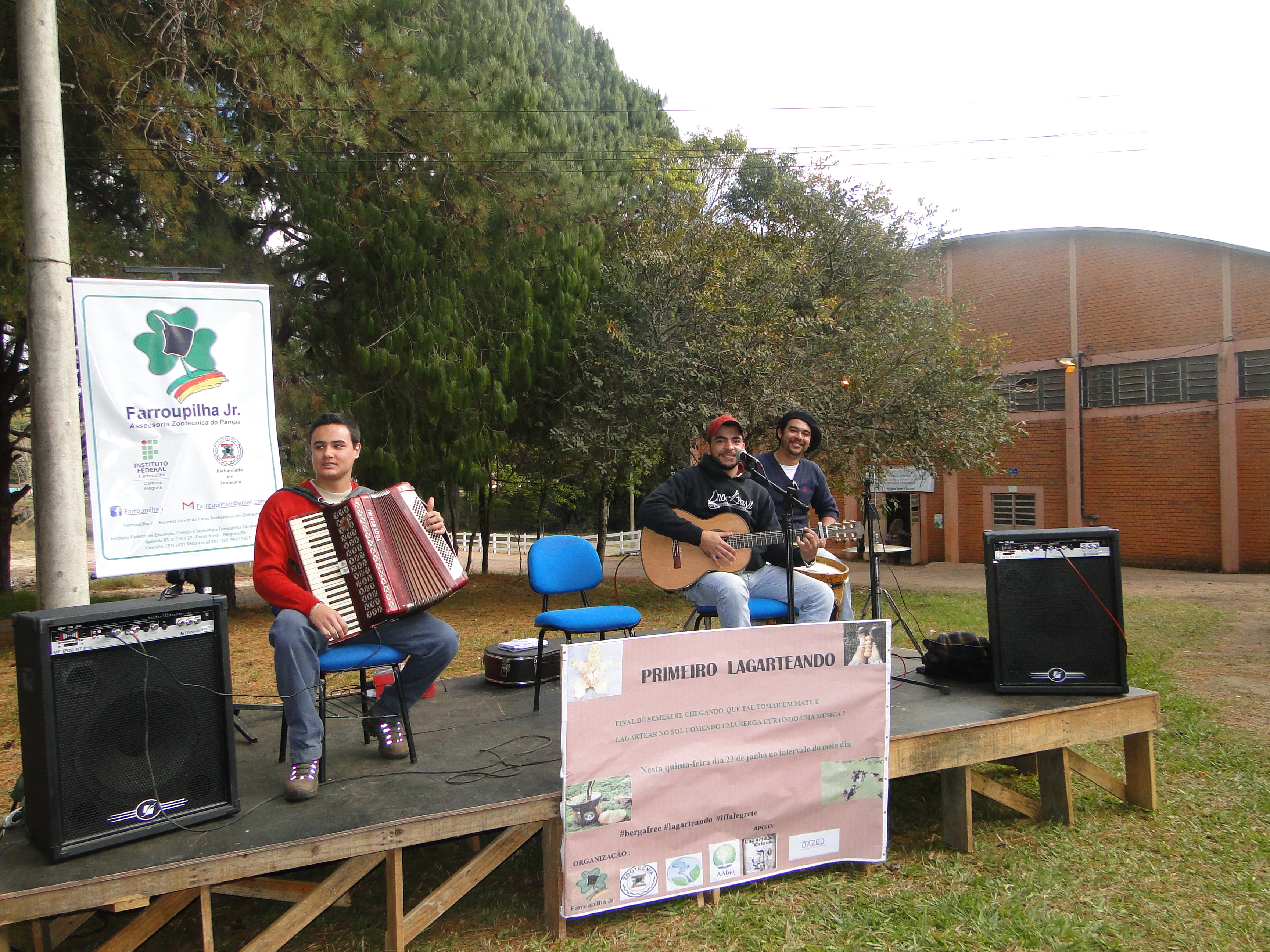 A primeira edição do Lagarteando misturou bergamota, sol, laranja, mate e muitos talentos musicais de nossa instituição. O evento, realizado no Campus do IF Farroupilha Alegrete, foi organizado pela Farroupilha Jr, pelas coordenações e pelos diretórios acadêmicos dos cursos de Zootecnia e Biologia. Agradecemos a todos alunos e colegas que de alguma forma colaboraram para que este evento fosse realizado. (Prof. Vinícius Radetzke)