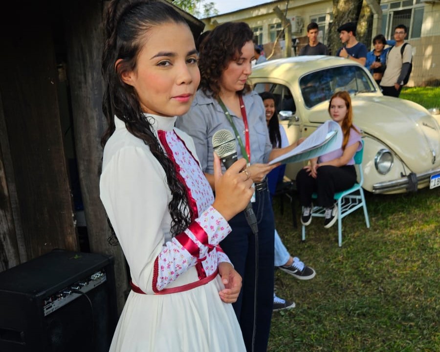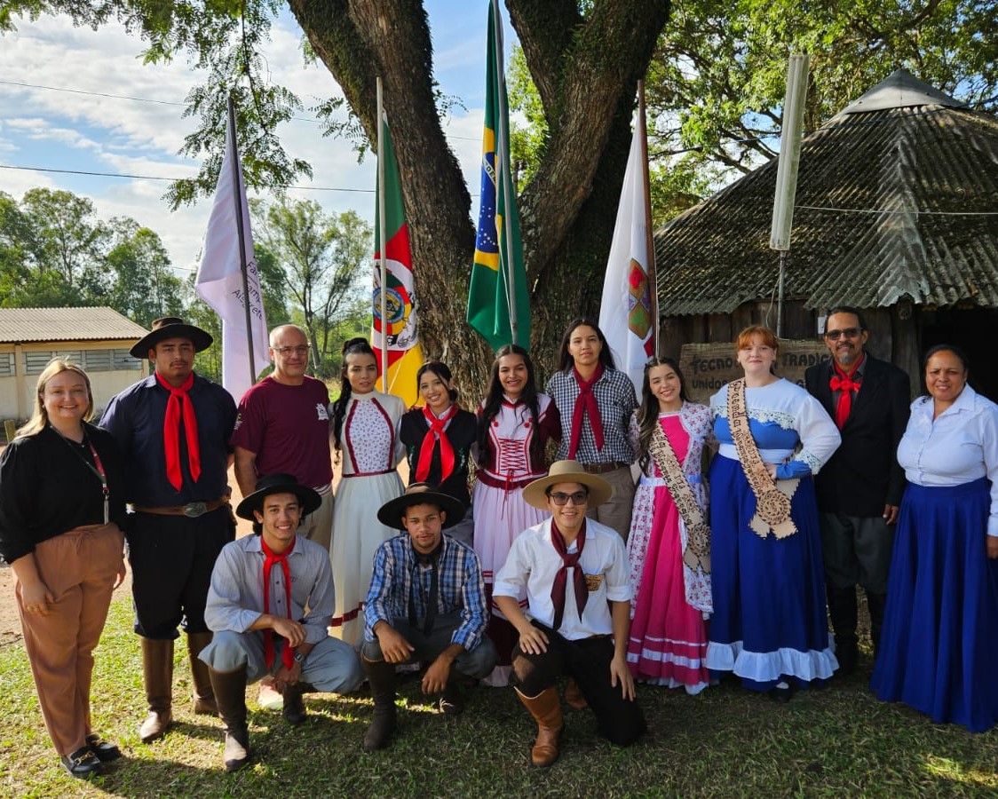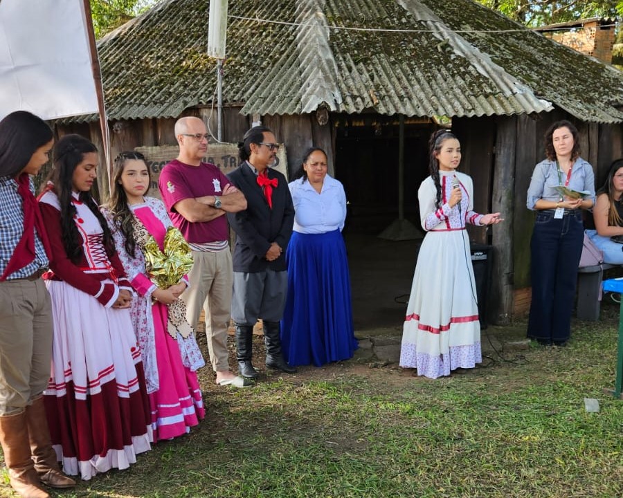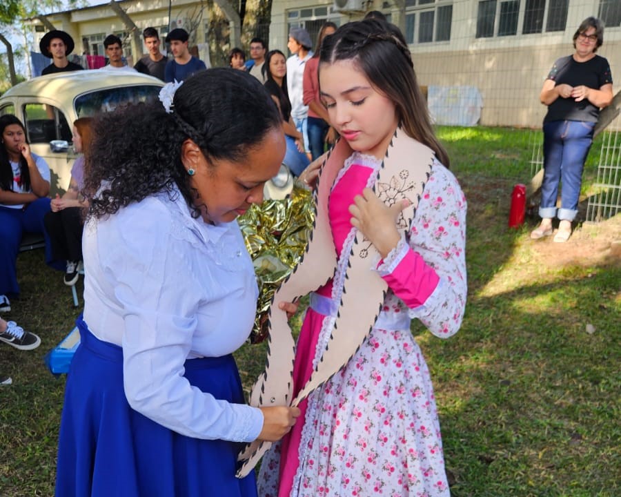 A nova posteira, Milena Chagas, falou em nome da patronagem, destacando o compromisso da equipe com a valorização das tradições gaúchas dentro e fora do ambiente escolar.