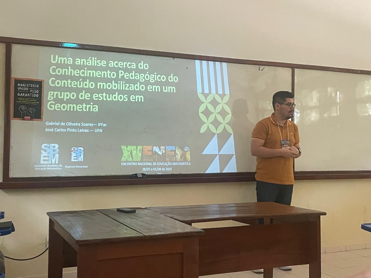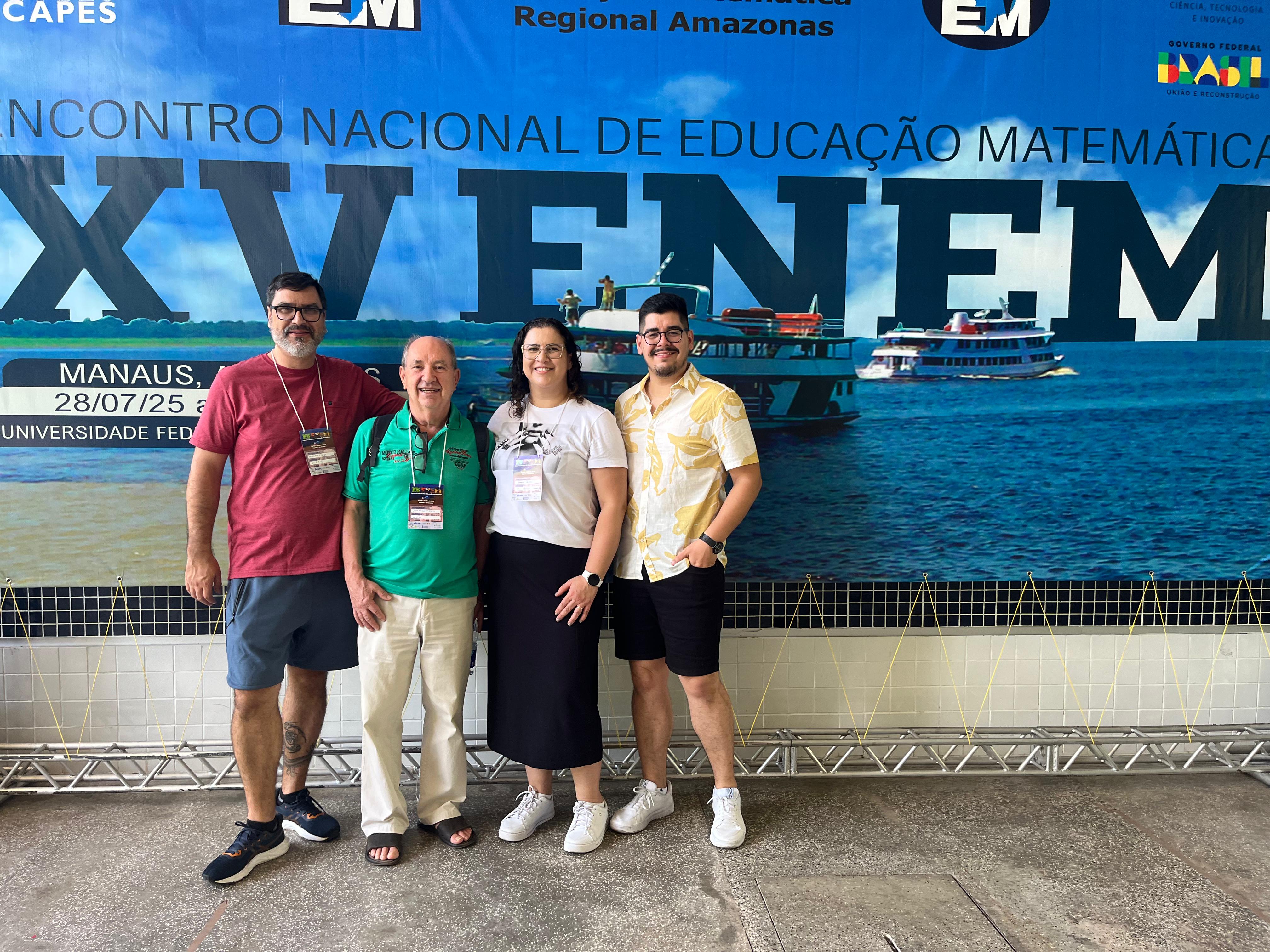 Os professores Gabriel de Oliveira Soares e Mauricio Ramos Lutz, do Instituto Federal Farroupilha – Campus Alegrete, participaram do XV Encontro Nacional de Educação Matemática (ENEM), principal evento da área no Brasil, realizado entre os dias 29 de julho e 1º de agosto de 2025, em Manaus/AM. O evento reuniu cerca de 2.500 professores e pesquisadores de todo o país.