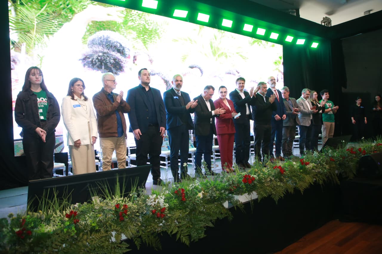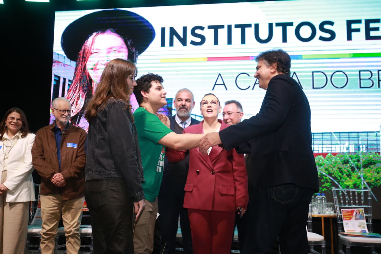 Um momento de destaque para o Campus Alegrete foi a participação do estudante Gustavo Schimitz da Rosa, do curso Técnico em Informática Integrado e presidente do Grêmio Estudantil, que compôs a mesa oficial ao lado de uma estudante do Campus Santa Rosa. Ambos representaram os estudantes da instituição, reforçando o caráter democrático e inclusivo da cerimônia.