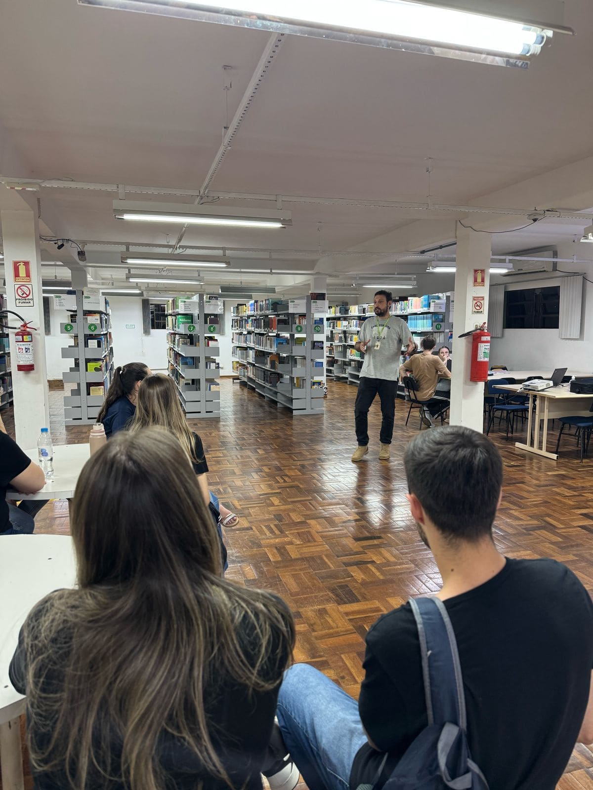 - Visita guiada na Biblioteca, conduzida pelo servidor Frederico Cutty, com orientações sobre o acesso ao acervo e sistemas da Biblioteca;