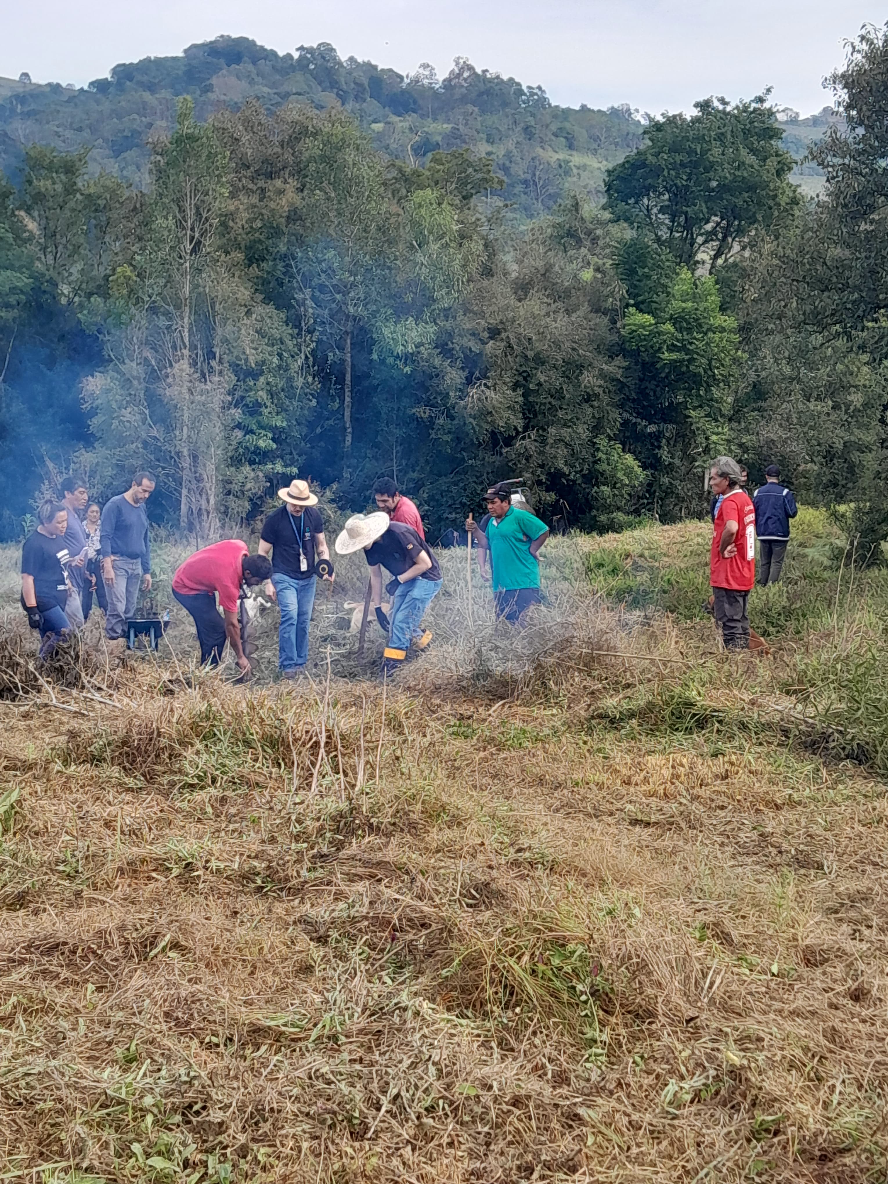 A atividade ocupou a manhã e a tarde de sábado. Ela foi orientada pelos professores João Batista Pellegrini (IFFar) e Oscar Agustín Torres Figueiredo (UFSM), especializados em silvicultura e em agroflorestas. As ações foram registradas em áudio e vídeo pelo professor Joel Guindani (UFSM) e pelo TAE Lucas Hernandes (IFFar), que trabalham, junto da professora Graziela Motta (IFFar) com a documentação audiovisual do projeto. Todos os participantes almoçaram juntos, uma galinhada preparada pela comunidade indígena, acompanhada do ‘emĩ’, tradicional ‘bolo de cinzas’ Kaingang.