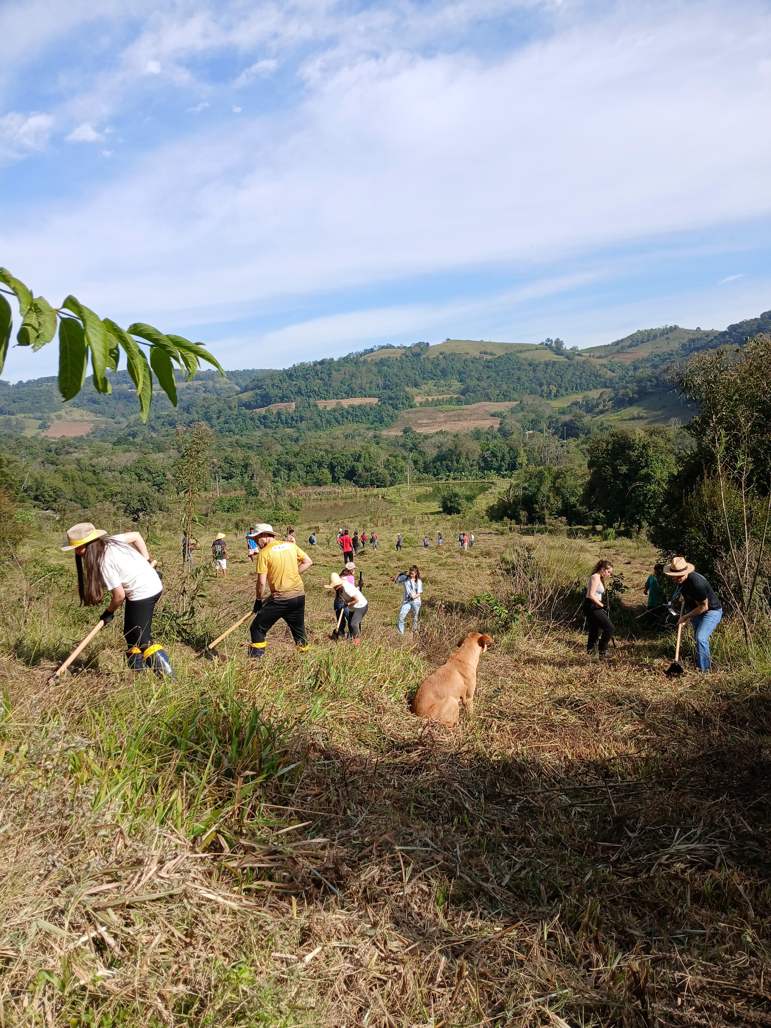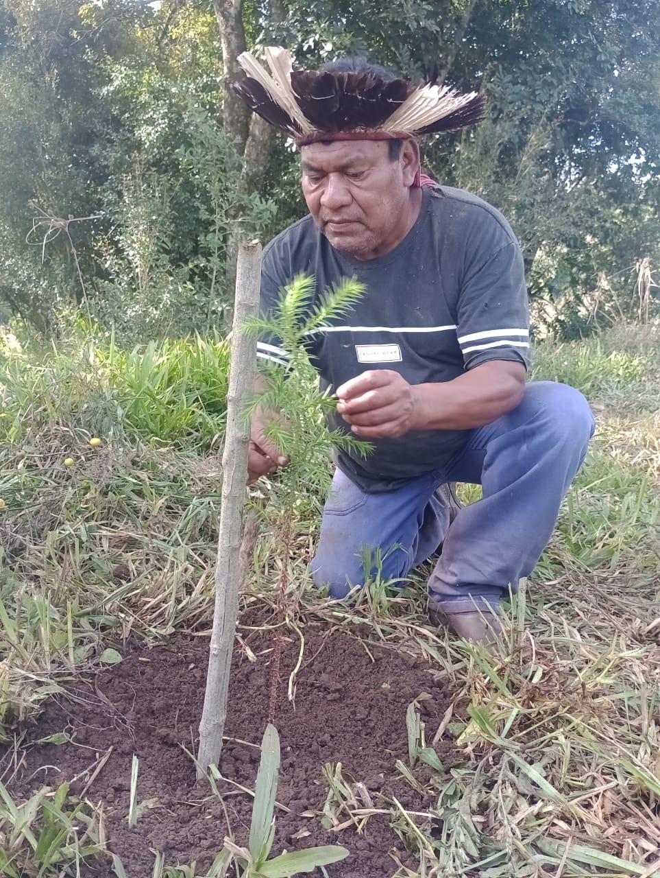 No sábado, dia 17 de maio de 2025, o projeto de extensão “Recuperação de matas nativas degradadas e estabelecimento de quintais alimentares agroflorestais” fez o primeiro mutirão de plantio de mudas de árvores nativas na Terra Indígena Rio dos Índios, em Vicente Dutra, RS. Foram plantadas 420 mudas de árvores, sendo 100 araucárias, 100 ervas-mate, 220 nativas variadas, dispostas de forma a contribuir com a ampliação da área de matas nativas já existente no local. O plantio cobriu uma área de aproximadamente 4.500m².