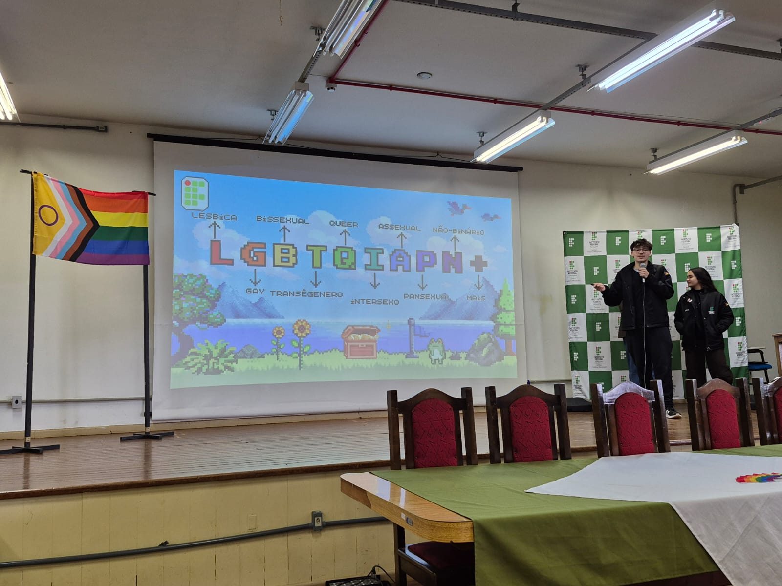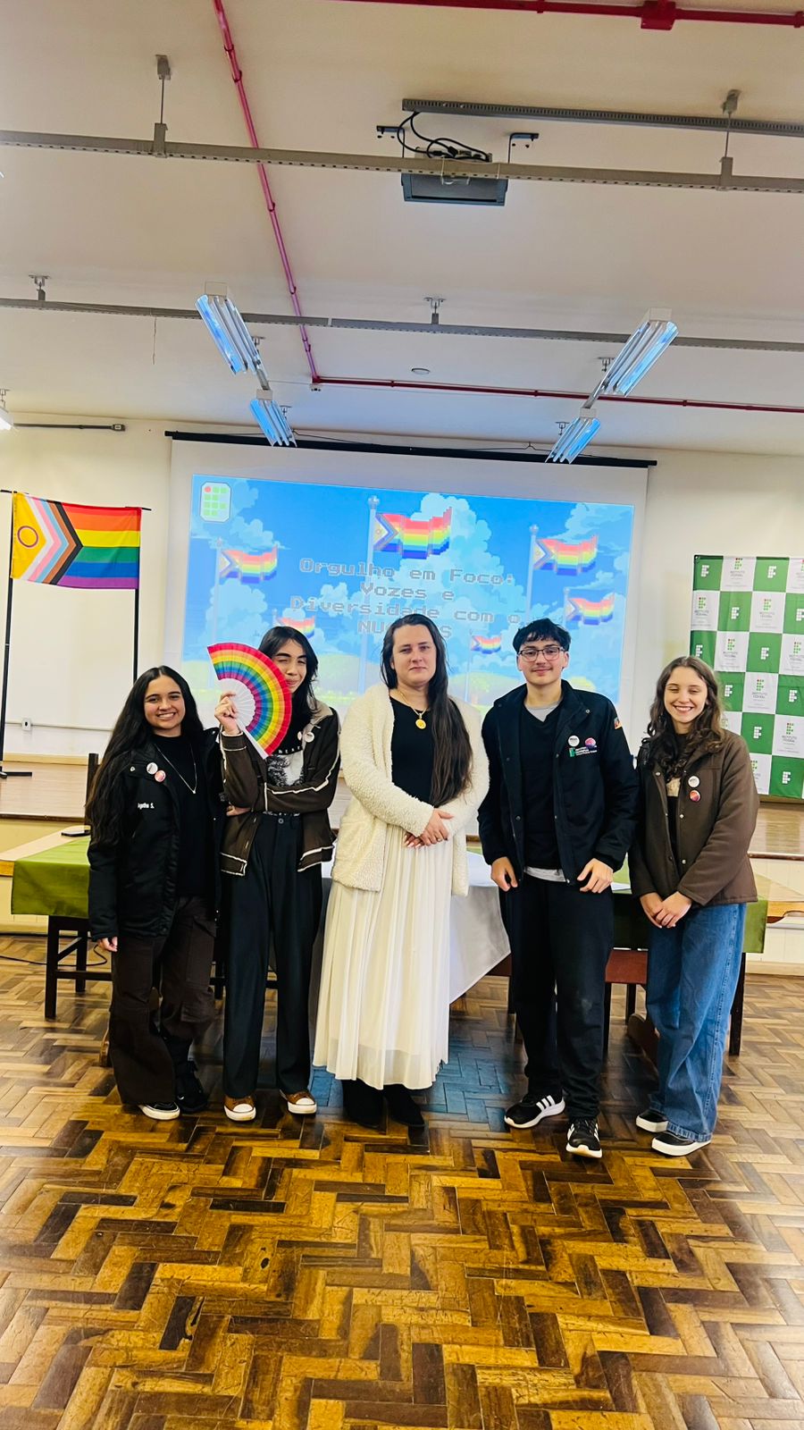 Na tarde do dia 30 de junho, o Núcleo de Gênero e Diversidade Sexual (NUGEDIS) do campus Frederico Westphalen promoveu o evento “Orgulho em Foco: vozes e diversidade com o NUGEDIS”, como parte das ações de visibilidade e conscientização no mês do Orgulho LGBTQIAPN+. A atividade foi organizada por estudantes envolvidos no Núcleo de Gênero e Diversidade Sexual e reuniu participantes em um espaço de diálogo, escuta e reflexão sobre a importância da diversidade no ambiente escolar e social.