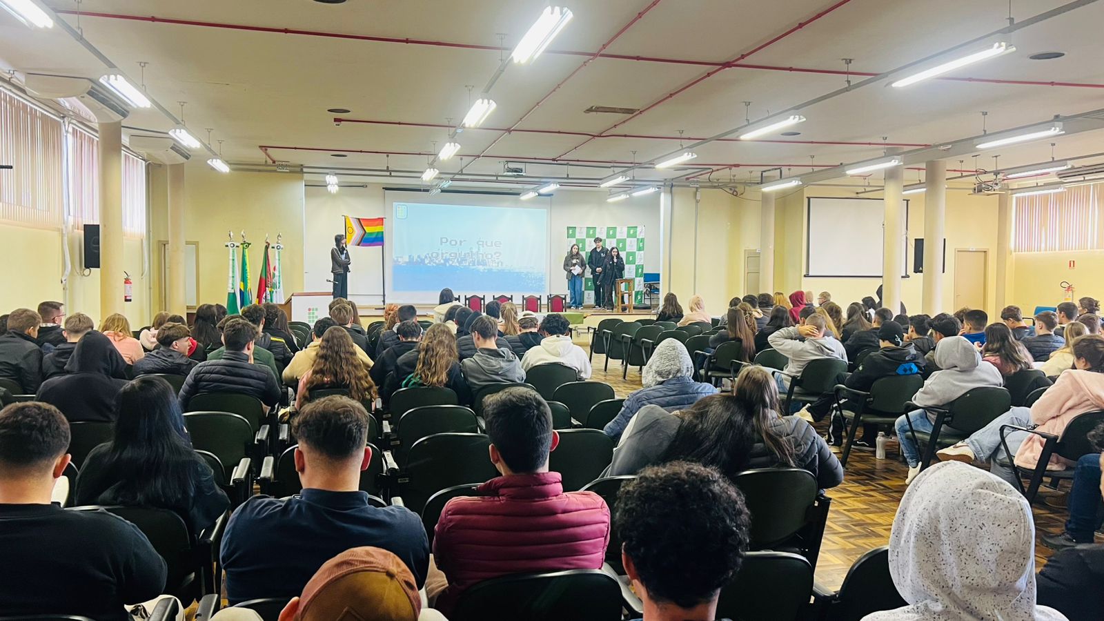 O encontro contou com a presença de Tainá Faligurski, representante da Associação da Diversidade de Frederico Westphalen, que compartilhou sua trajetória e falou sobre os desafios e avanços enfrentados pela comunidade LGBTQIAPN+ na região. A convidada reforçou a importância do apoio institucional e das políticas públicas voltadas à promoção de direitos e do respeito às diferentes identidades e expressões de gênero. Com falas potentes e acolhedoras, o evento reforçou o papel da escola como espaço de transformação social. A iniciativa do NUGEDIS evidencia o compromisso do campus FW com a equidade e a construção de uma educação mais inclusiva, na qual todas