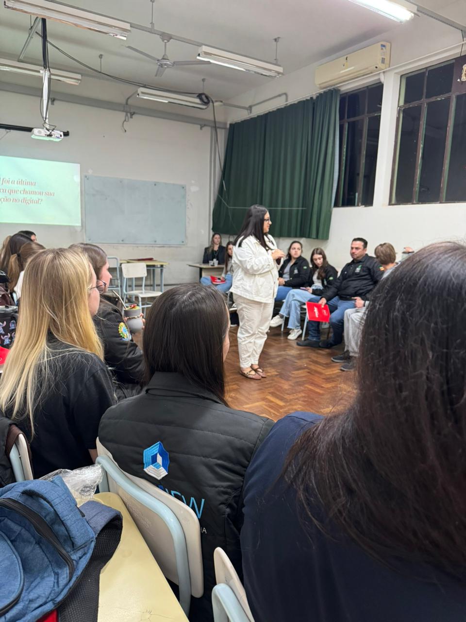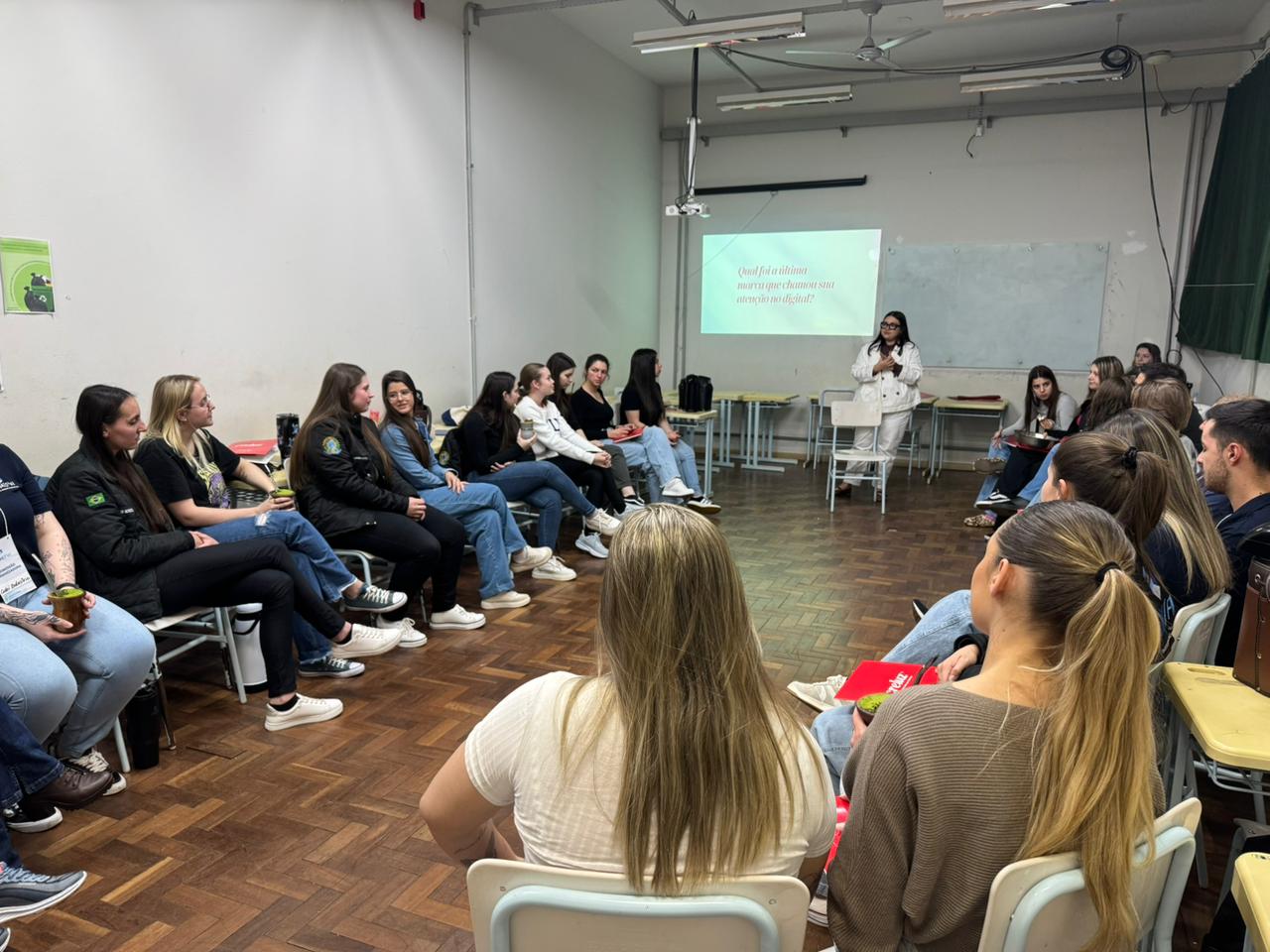 Ao mesmo tempo, os representantes do Sicoob, Luis Henrique Kist e Jaime Paulo Link Junior, conduziram a oficina “Dinheiro em movimento: Como organizar, poupar e investir”, com foco na educação financeira e na gestão eficiente dos recursos pessoais.