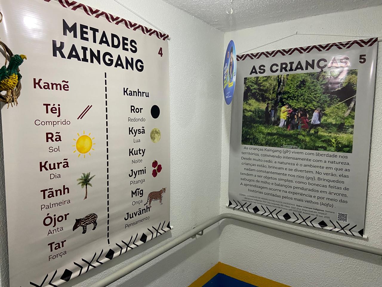 O projeto de extensão Museu itinerante de arte e cultura Kaingang, desenvolvido pelo Instituto Federal Farroupilha – Campus Frederico Westphalen, continua avançando pela cidade. Na manhã de hoje, sexta- feira, 28/11, o museu migrou da Escola Estadual de Ensino Fundamental Afonso Pena para o SESC Frederico Westphalen, onde foi acolhido pela equipe de cultura da unidade. As agentes de programas sociais Francini Trindade e Maitê Tieppo acolheram a exposição e acompanharam sua instalação no espaço cultural do SESC. A mostra permanece no local até o final da próxima semana, aberta à visitação do público. Composta por pôsteres informativos sobre a cultura Kaingang e objetos produzidos por artesãos indígenas, a exposição busca ampliar o diálogo intercultural e oferecer à comunidade novas oportunidades de aprendizagem e contato com o patrimônio cultural Kaingang. A presença do museu no SESC Frederico Westphalen reforça a parceria entre a Instituição e o IFFar – Campus Frederico Westphalen, especialmente por meio do Núcleo de Arte e Cultura (NAC) e do Núcleo de Estudos Afro-Brasileiros e Indígenas (NEABI). Essa colaboração já rendeu importantes ações conjuntas, como as ações realizadas em 2024 na praça central da cidade, em homenagem ao Dia da Consciência Negra, então recém instituído como feriado nacional pela Presidência da República. A comunidade regional está convidada a prestigiar a exposição no SESC Frederico Westphalen e conhecer de perto a riqueza, a história e a expressão artística do povo Kaingang. A visitação é gratuita, e todas as pessoas são bem-vindas.