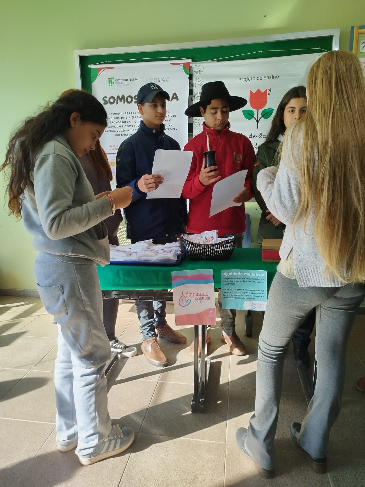 Nos dias 12 e 13 de julho, o Instituto Federal Farroupilha (IFFar) realizou uma ação educativa voltada à promoção da saúde e à valorização da dignidade das pessoas que menstruam. A atividade ocorreu no Campus Jaguari e no Centro de Referência de Santiago, em parceria com o projeto de ensino da Assistência Estudantil “Roda de Saúde e Qualidade de Vida”, a Coordenação de Ações Afirmativas e com o apoio dos núcleos NEABI (Núcleo de Estudos Afro-Brasileiros e Indígenas), NUGEDIS (Núcleo de Gênero e Diversidade Sexual).