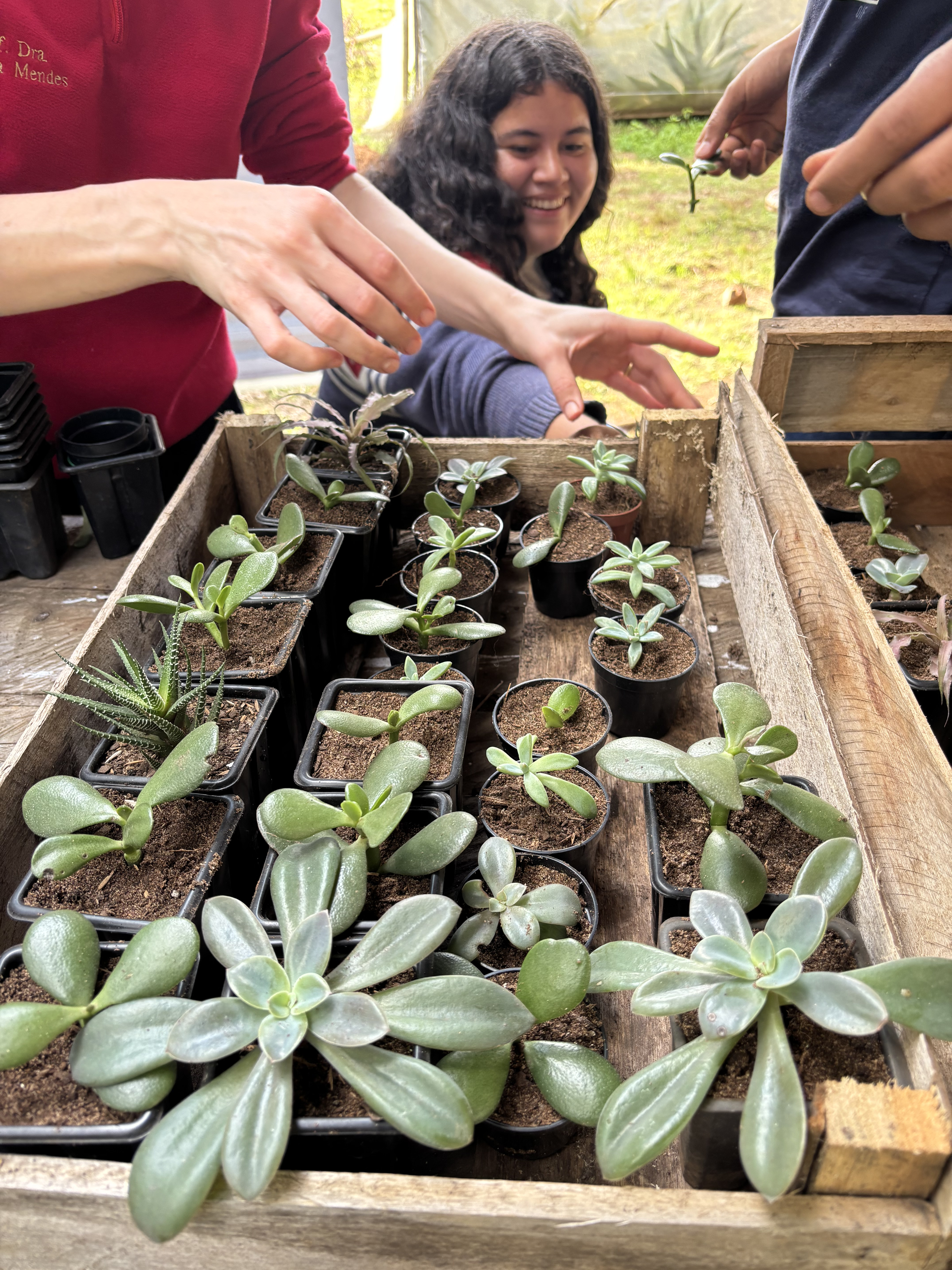 Durante a oficina, os participantes aprenderam sobre as características das suculentas, cuidados essenciais para o cultivo, preparo de substrato ideal, manutenção dos vasos e técnicas de propagação por folhas. Também foi abordada a multiplicação das lavandas por estaquia, incentivando práticas sustentáveis e acessíveis de jardinagem.