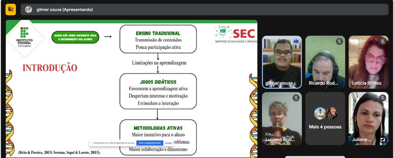À noite, foram realizadas as apresentações de 19 trabalhos em formato on-line, com a participação de estudantes dos cursos de graduação em Pedagogia EaD, das duas especializações ofertadas na modalidade EaD e do mestrado semipresencial do Campus.