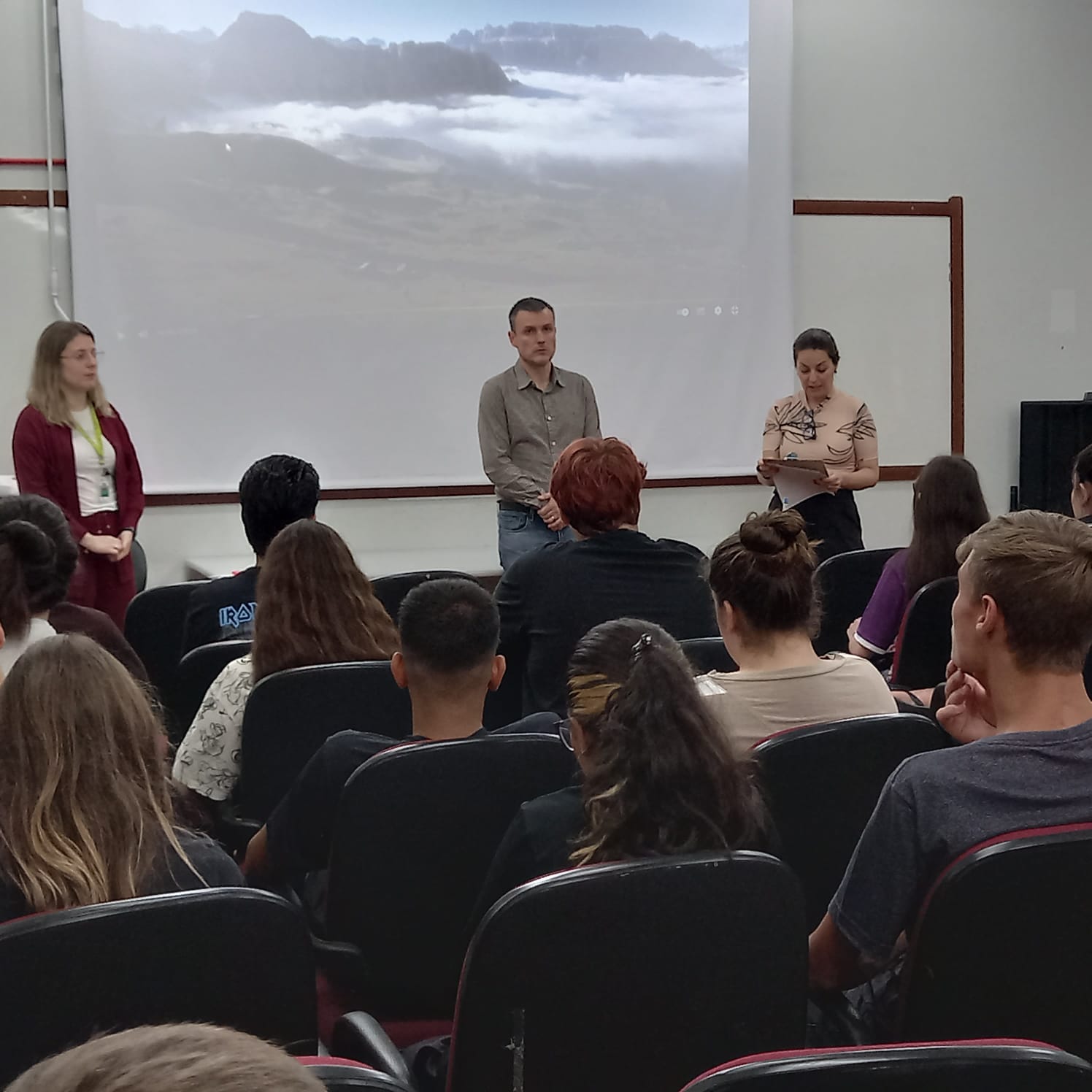 No dia 16 de outubro de 2025, o Campus Jaguari recebeu a presença do Defensor Público do município de Jaguari, Gustavo Catellan Ruffo, para dialogar com os estudantes da unidade sobre Bullying e Ciberbullying, com ênfase na atuação profissional do defensor em casos que envolvem violência escolar.