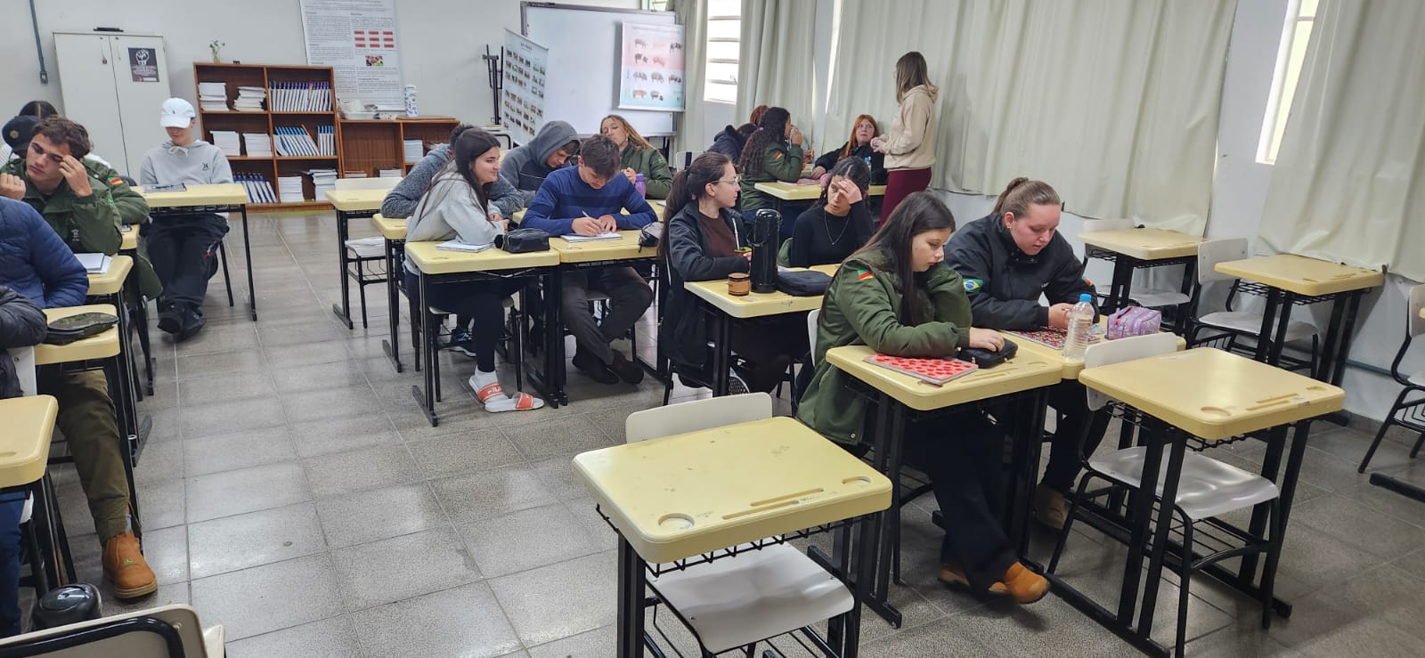 A oficina “Palavras que Ferem” foi realizada ontem, no Instituto Federal Farroupilha – Campus Jaguari, conduzida pela servidora Melissa Reghelin Gastaldo, com o apoio da servidora Clarissa de Souza Guerra. A atividade envolveu as turmas dos cursos Técnico em Agricultura e Técnico em Sistemas de Energia Renovável, e teve como principal propósito refletir sobre a força da linguagem, reconhecendo como as palavras podem tanto gerar quanto curar a violência.