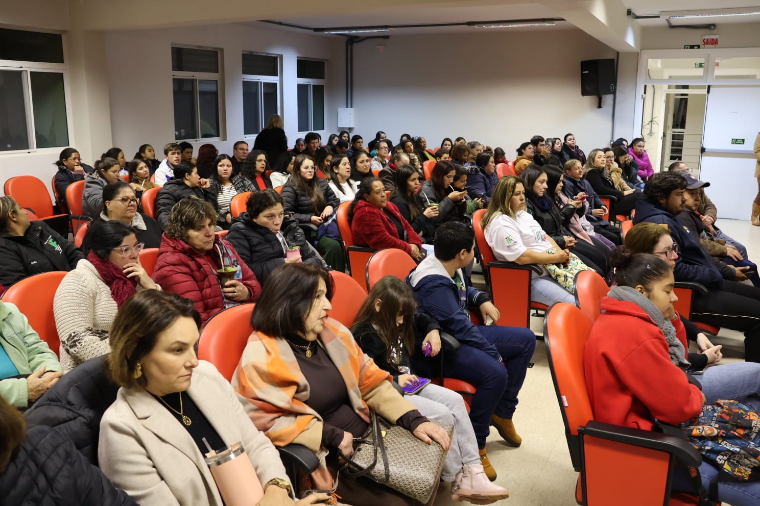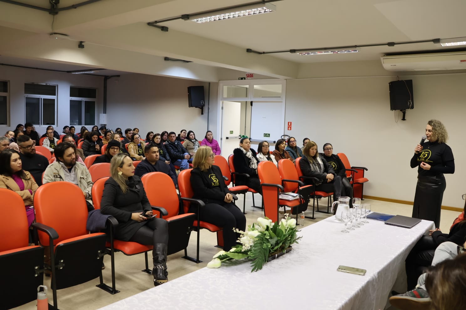A noite de celebração também contou com a participação do Coral Vozes da Terra, cuja trajetória é marcada por apresentações locais e regionais, incluindo apresentações internacionais no Uruguai, Paraguai e Argentina, levando a cultura, a valorização do canto coral e o município de Júlio de Castilhos.