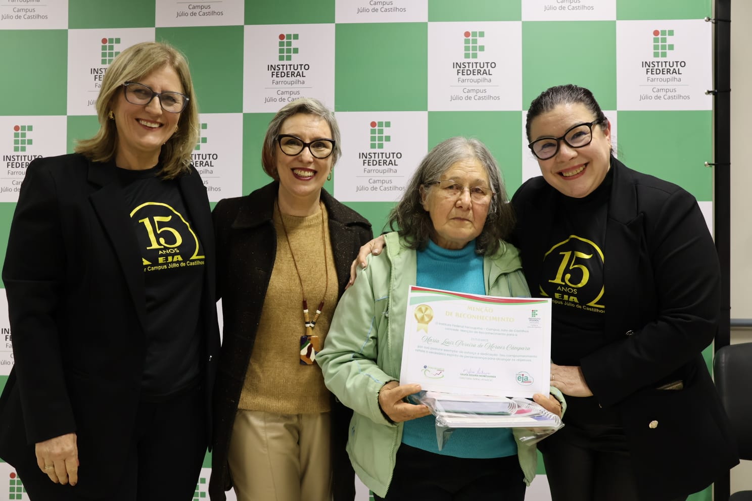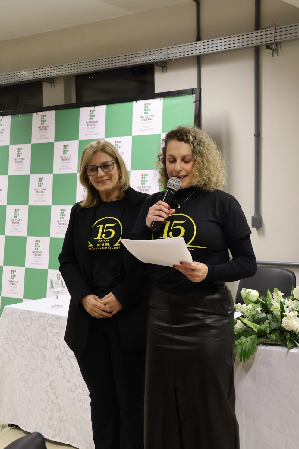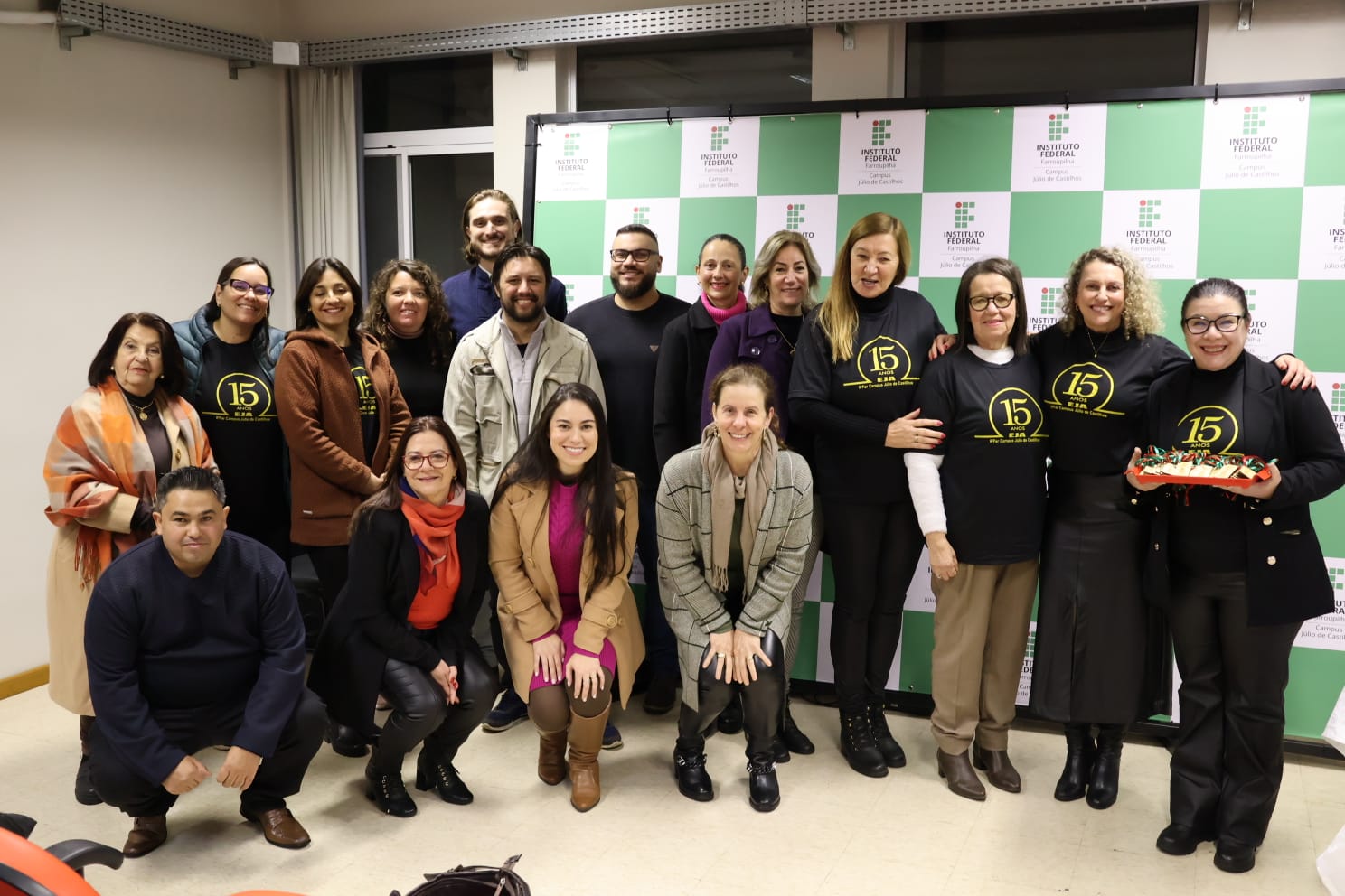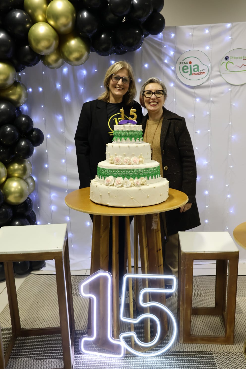 Em sua fala, a diretora-geral, professora Sílvia Montagner, destacou que a EJA extrapola a sala de aula ao proporcionar experiências como o Bazar do Proeja, a Feira de Negócios e as viagens de estudo. “São ações que aproximam os estudantes do mundo do trabalho e fortalecem seu desenvolvimento cidadão”, afirmou. A coordenadora institucional da EJA, professora Cléia Tonin, reforçou: “Mais do que números, esses 15 anos representam histórias de vida, sonhos realizados e futuros reconstruídos”.