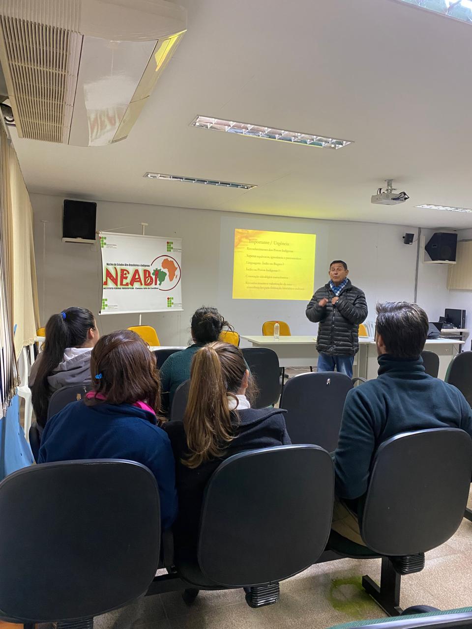 A primeira palestra foi ministrada pelo professor Aristeu Castilhos da Rocha, que abordou o tema “Contribuições indígenas e africanas na formação histórica e cultural brasileira”, destacando as influências fundamentais desses povos na construção da nossa sociedade.