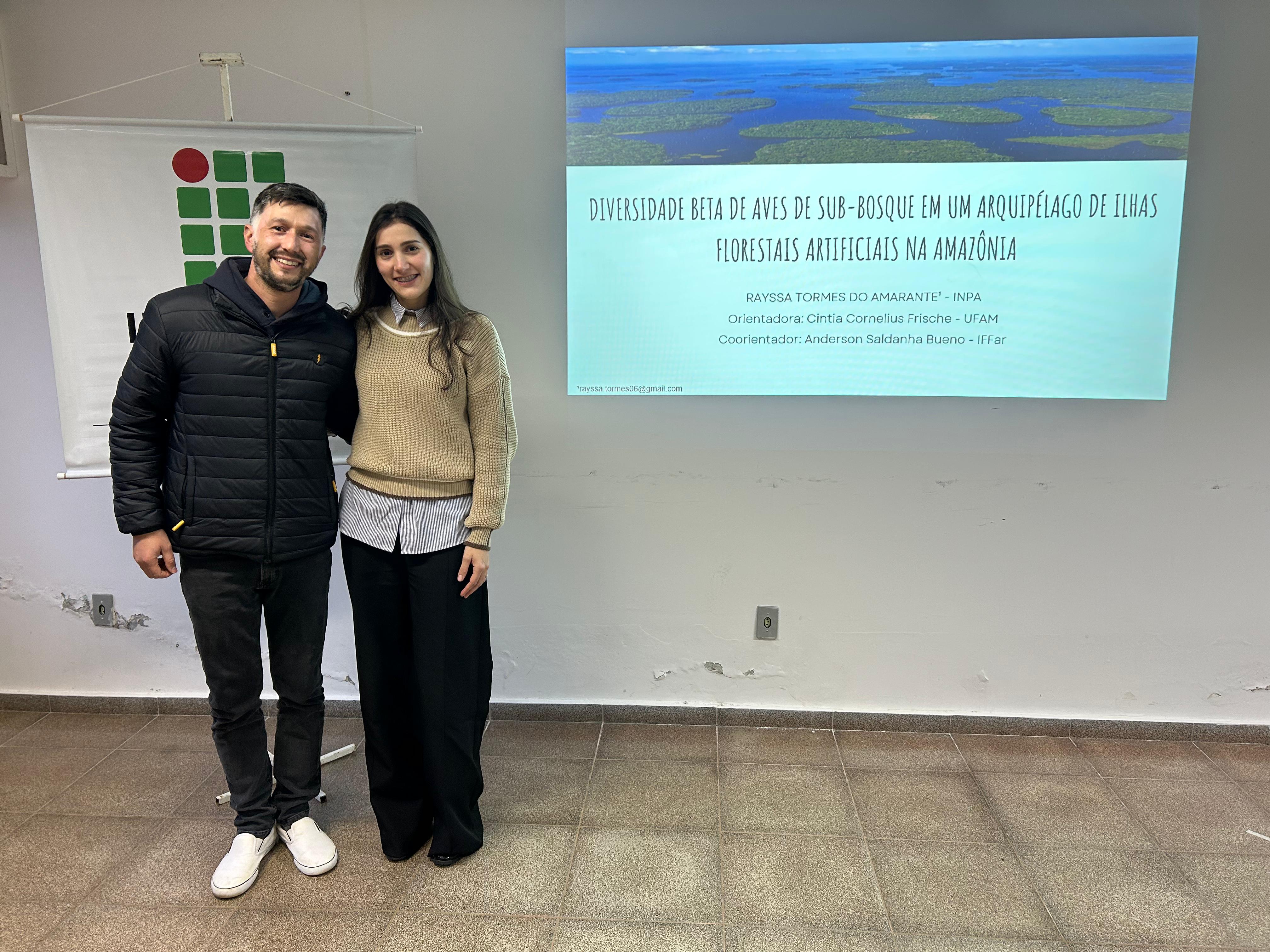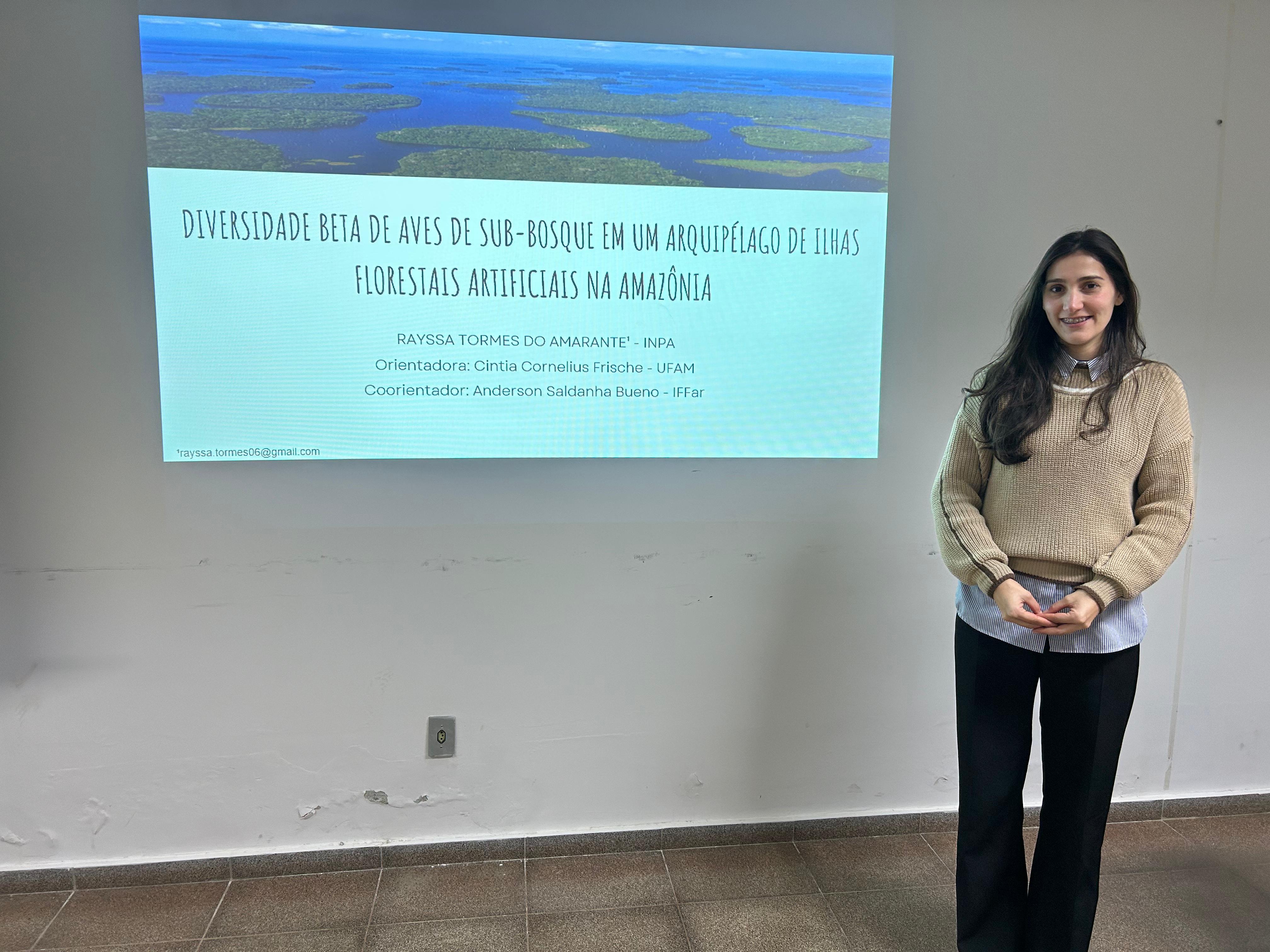 Rayssa Tormes do Amarante, egressa do curso de Licenciatura em Ciências Biológicas do IFFar – Campus Júlio de Castilhos e da especialização em Biodiversidade e Conservação do IFFar – Campus Panambi, defendeu no dia 25 de junho de 2025 sua dissertação de mestrado intitulada “Diversidade beta de aves de sub-bosque em um arquipélago de ilhas florestais artificiais na Amazônia”.