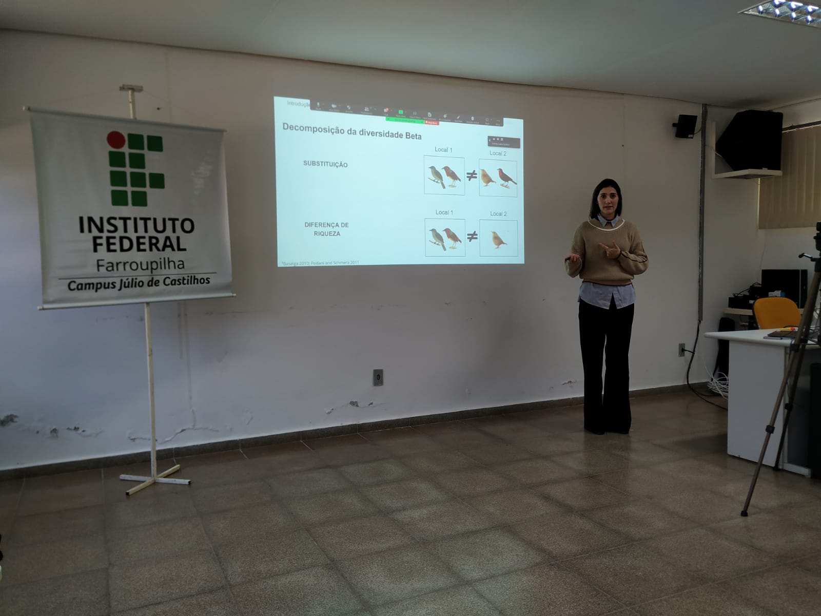 A defesa ocorreu em formato híbrido, com apresentação presencial no auditório do prédio A do IFFar-JC e transmissão simultânea pela plataforma Zoom. Participaram 26 pessoas, sendo nove presencialmente e 17 remotamente. A banca avaliadora foi composta por pesquisadores de destaque: a Dra. Ana Filipa Palmeirim (Portugal), professora visitante da Universidade Federal do Pará (UFPA); o Dr. Sérgio Henrique Borges (UFAM); e o Dr. Franchesco Della Flora (IFFar JC). Após a apresentação e a arguição, a dissertação foi aprovada por unanimidade, com elogios à qualidade do trabalho desenvolvido.