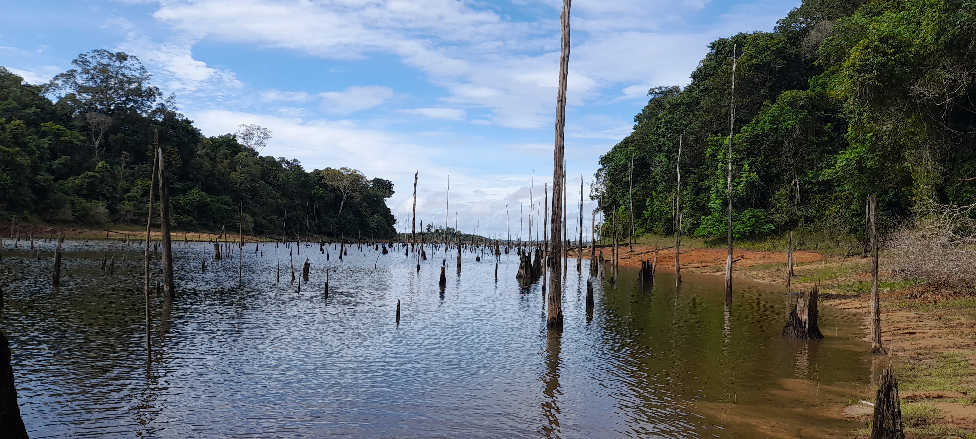 Sobre a área de estudo, Rayssa explica que, antes de 1987, a região era composta por uma extensa floresta contínua. A construção da Usina Hidrelétrica de Balbina represou o rio Uatumã, afluente do rio Negro, resultando na inundação de cerca de 300 mil hectares de floresta. Os topos dos morros permaneceram acima do nível da água, formando o maior arquipélago de ilhas artificiais criadas por uma hidrelétrica no Brasil, com mais de 3.500 ilhas.