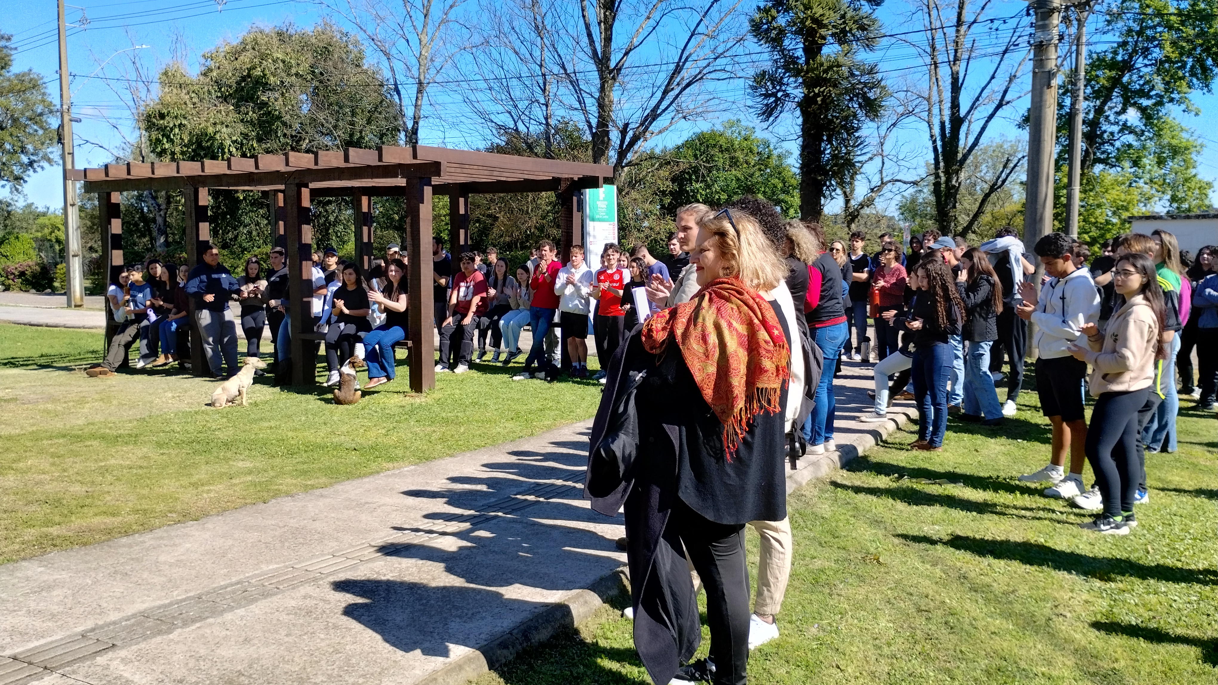 A Coordenadora das Ações Afirmativas do campus, Mariane Denardin, emocionou-se ao lembrar da colega homenageada. “Hoje, não posso estar feliz como normalmente sou, porque este banco representa morte. Representa a morte de uma pessoa querida, uma colega, e também de tantas outras mulheres.” Em sua fala, citou Vinicius de Moraes: “Que seja eterno enquanto dure”, e reforçou a importância de seguir em frente, apesar da dor, pois o mundo ainda guarda encontros transformadores.