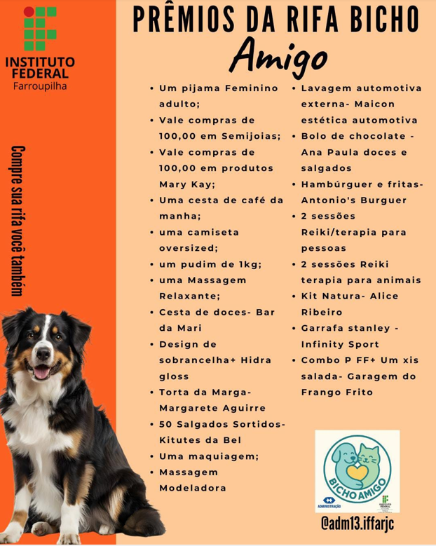 - Valor arrecadado com a rifa solidária: R$1.770,00, destinado ao Projeto Acolher (IFFAR JC) e às instituições ADAT e CMPDA (durante o 1º semestre de 2025);