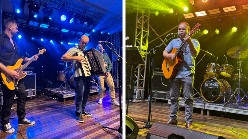 O clima de integração seguiu à noite, no Clube 25 de Julho, com a realização do 5º Ser IFFArt. Promovido pela Pró-Reitoria de Extensão, por meio do Núcleo de Arte e Cultura (NAC), o evento destacou o talento artístico dos servidores e servidoras do IFFar em apresentações de audiovisual, performance autoral e interpretação musical, além de uma exposição de artes visuais.