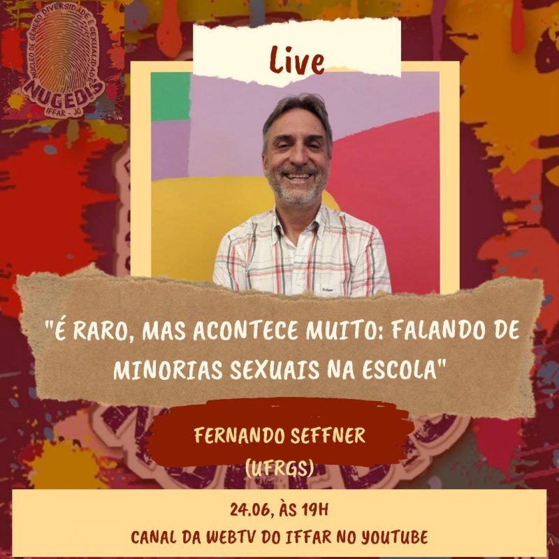 "É raro, mas acontece muito: falando de minorias sexuais na escola" é tema da live promovida pelo IFFar nesta quarta-feira (24), com o professor doutor Fernando Seffner (UFRGS) e mediação da servidora Alice Ribeiro.