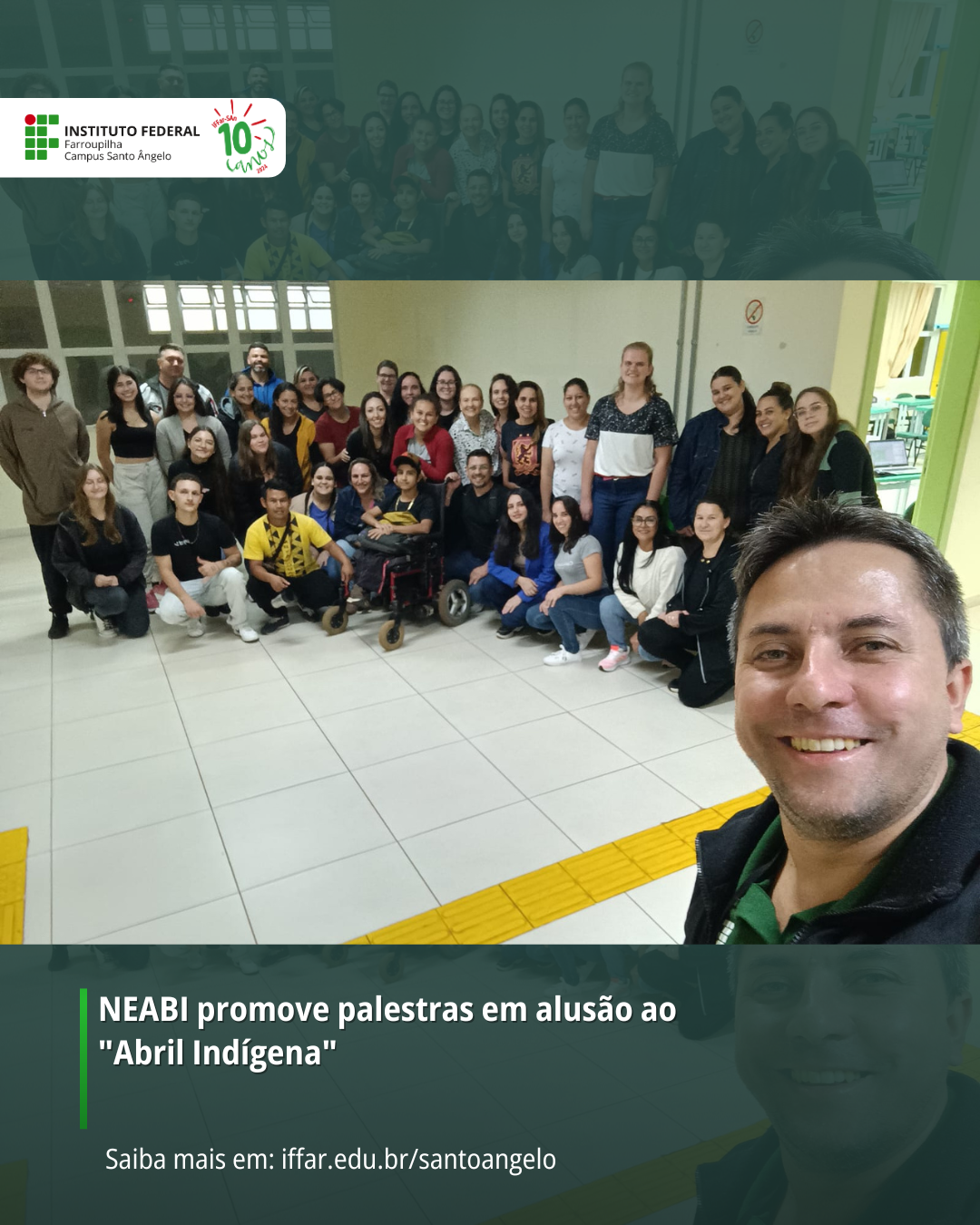 No último dia 23 de abril, o Núcleo de Estudos Afro-brasileiros e Indígenas (NEABI), do campus Santo Ângelo, promoveu encontros de debate e reflexão em alusão ao “Abril Indígena”, que celebra a herança cultural e as lutas dos povos indígenas no Brasil.