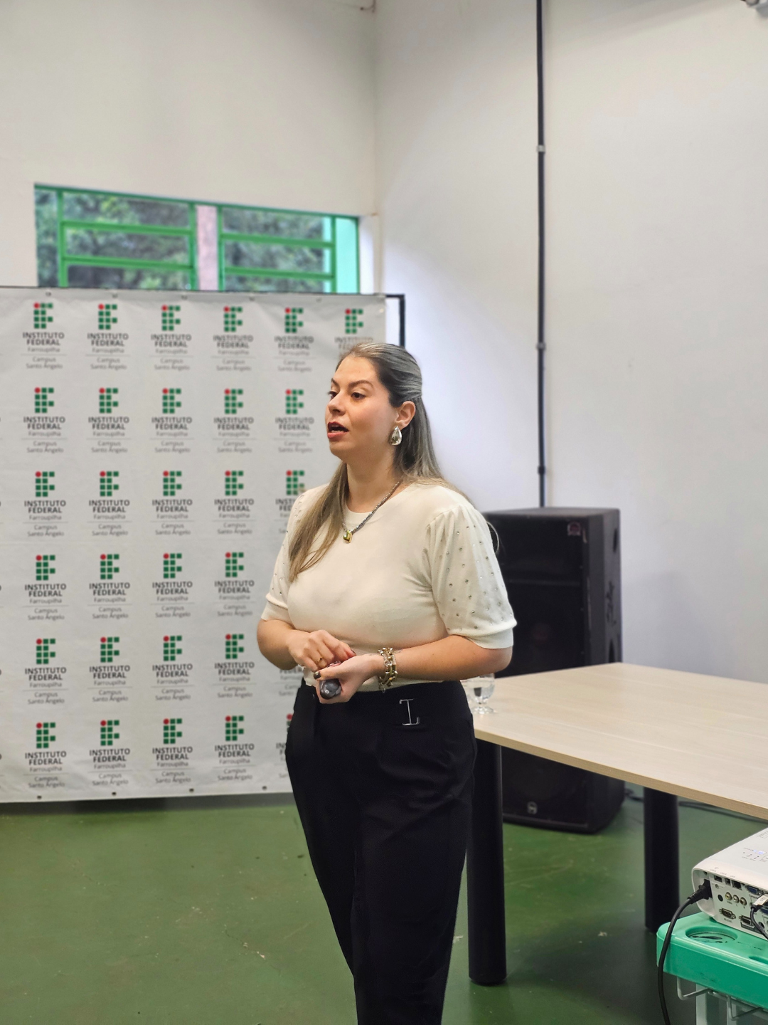 A troca de saberes entre a palestrante e os estudantes reforça o compromisso do IFFar-SAn com uma formação profissional integrada, ética e conectada com os desafios do campo e da sociedade.