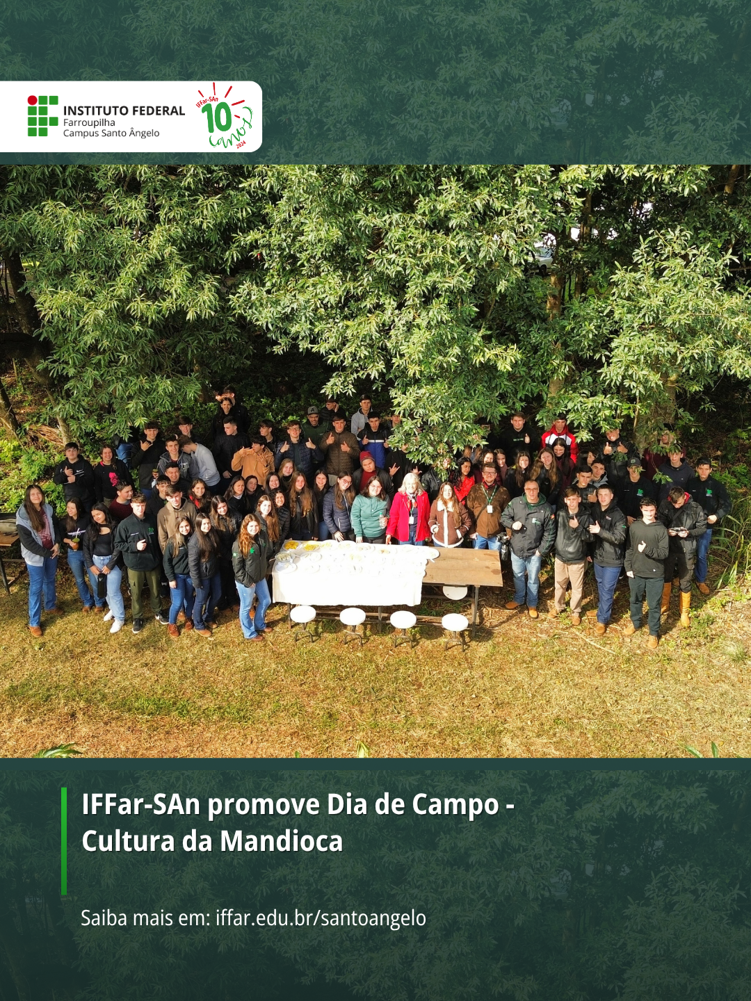 IFFar - Campus Santo Ângelo realizou no dia 09 de junho de 2025 o Dia de Campo sobre a Cultura da Mandioca, com o apoio de estudantes e servidores envolvidos nos cursos Técnico em Agricultura e Tecnólogo em Gestão do Agronegócio.