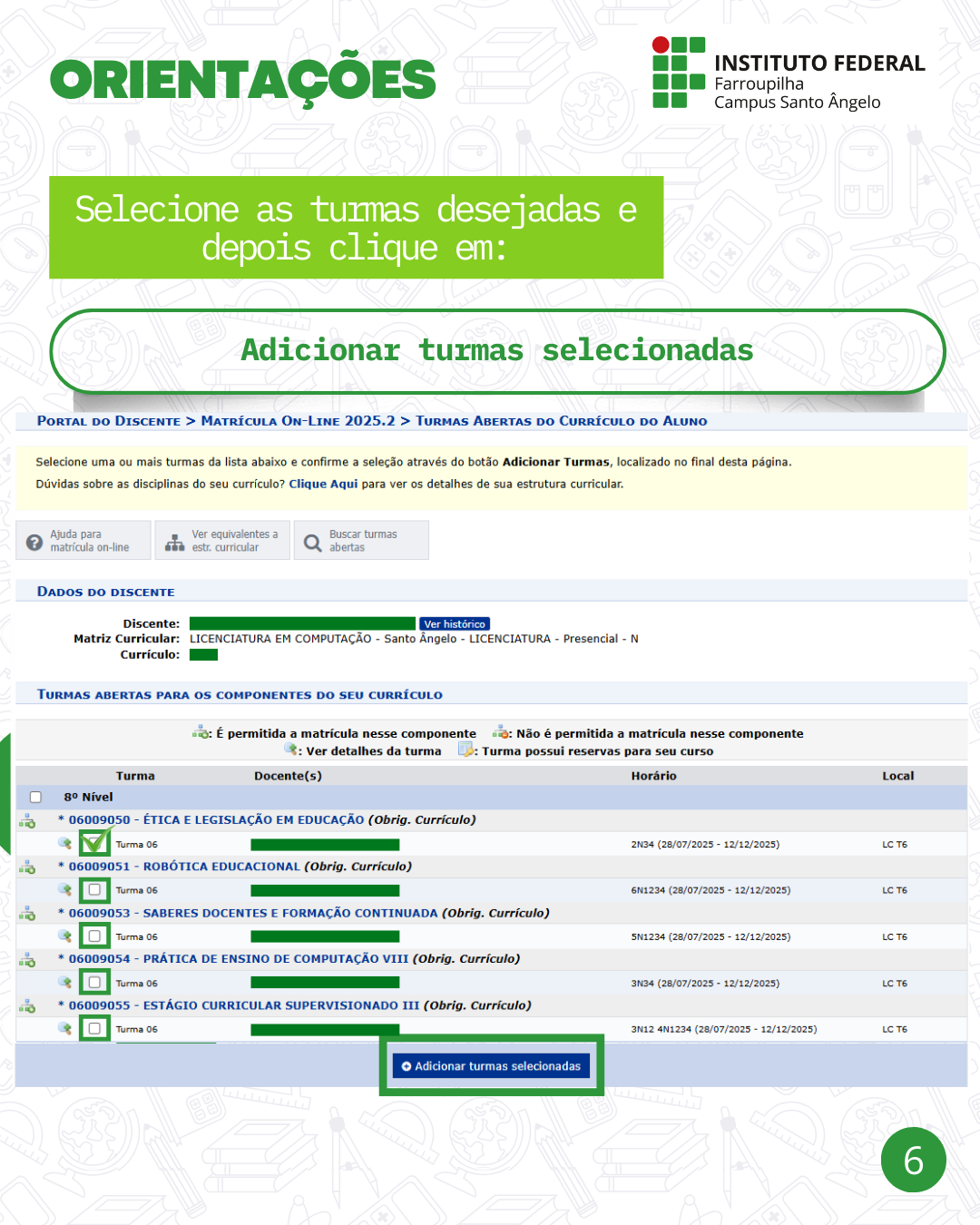 Dica: consulte o Tutorial do Discente para Solicitação de Matrícula Online, disponível dentro do próprio SIGAA.