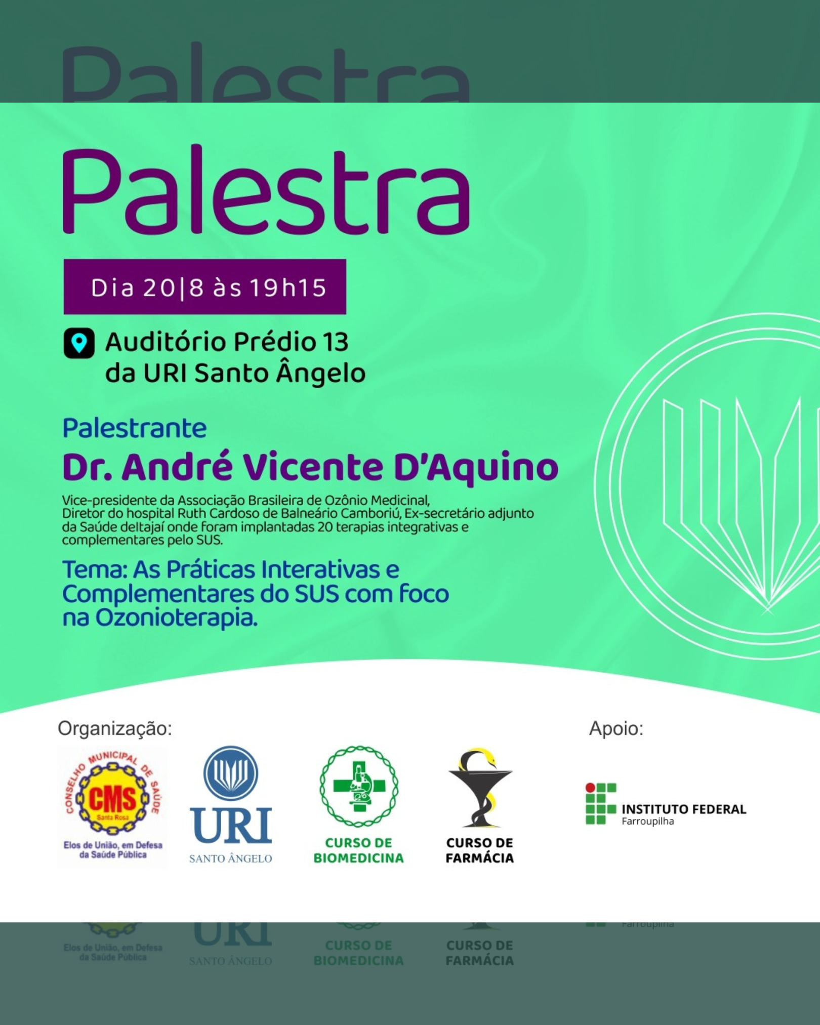 Cursos do Eixo de Ambiente e Saúde do IFFar-SAn participam de palestra "As Práticas Interativas e Complementares do SUS com foco na Ozonioterapia" na URI - Santo Ângelo