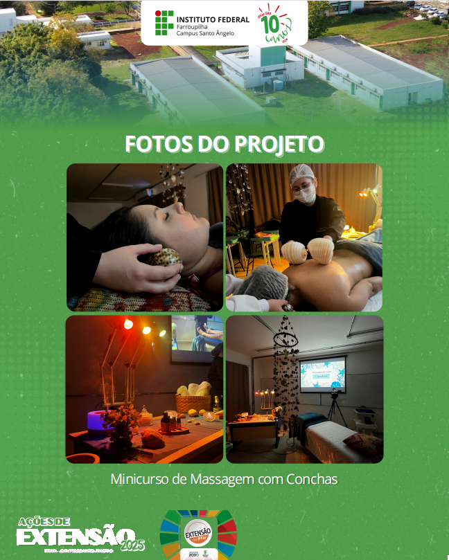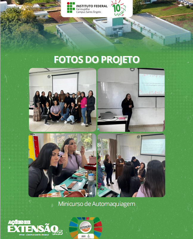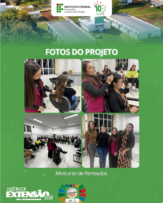 O projeto de extensão “Curso de Atualização em Estética e Bem-Estar – Ano 2” ofertou, em 2025, quatro minicursos gratuitos voltados à qualificação profissional na área da estética. Realizados entre agosto e novembro, os encontros reuniram ao todo 55 participantes externos e 15 participantes internos, entre estudantes, professoras, egressos e profissionais da área, promovendo atualização profissional, troca de saberes e vivências práticas em automaquiagem, massagem com conchas, massagem com pantalas e penteados contemporâneos.