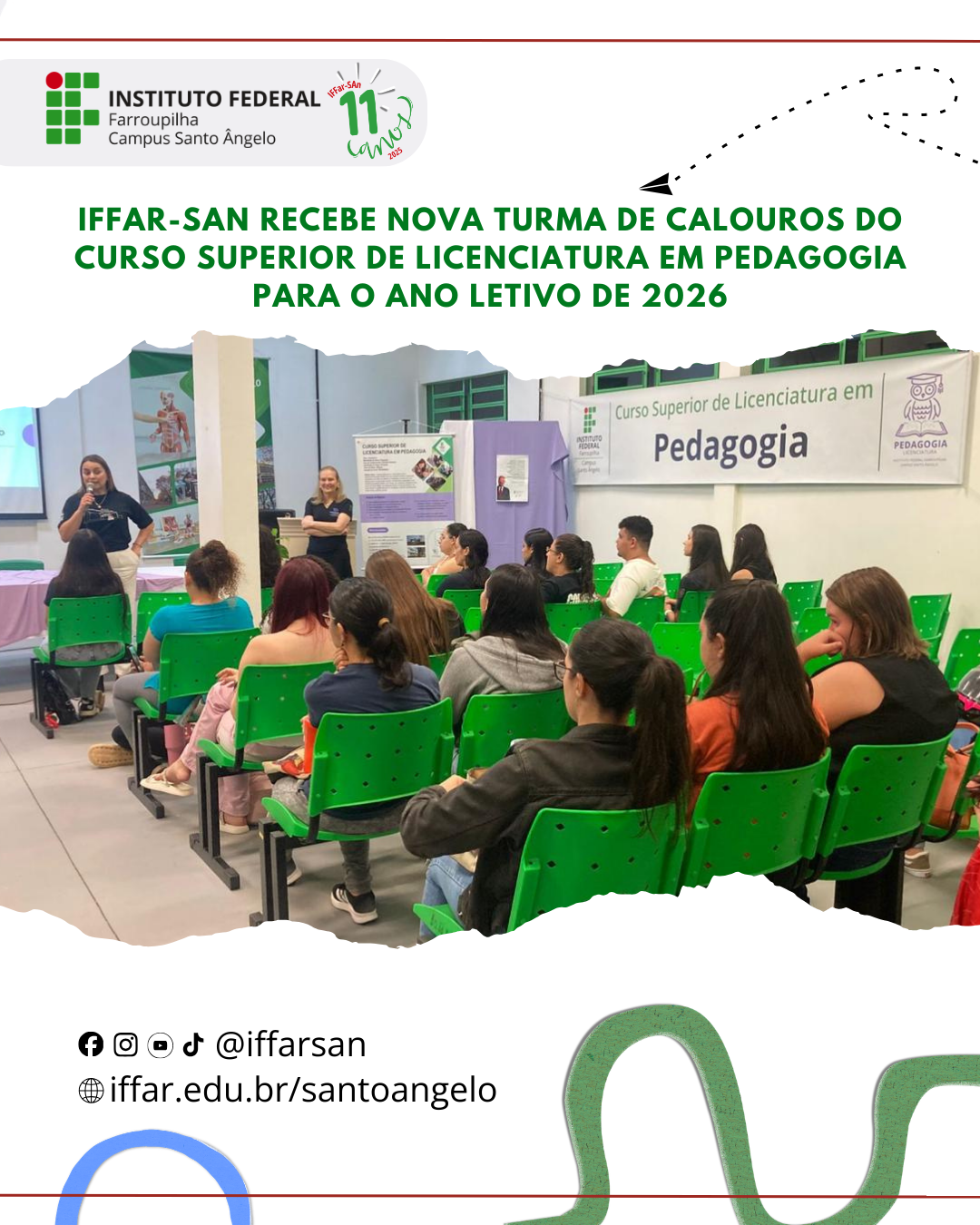 O Campus Santo Ângelo agradece a participação de diretores, servidores e acadêmicas veteranas que contribuíram para a realização da atividade, bem como dá as boas-vindas aos estudantes ingressantes, agradecendo pela escolha do curso e do IFFar-SAn.