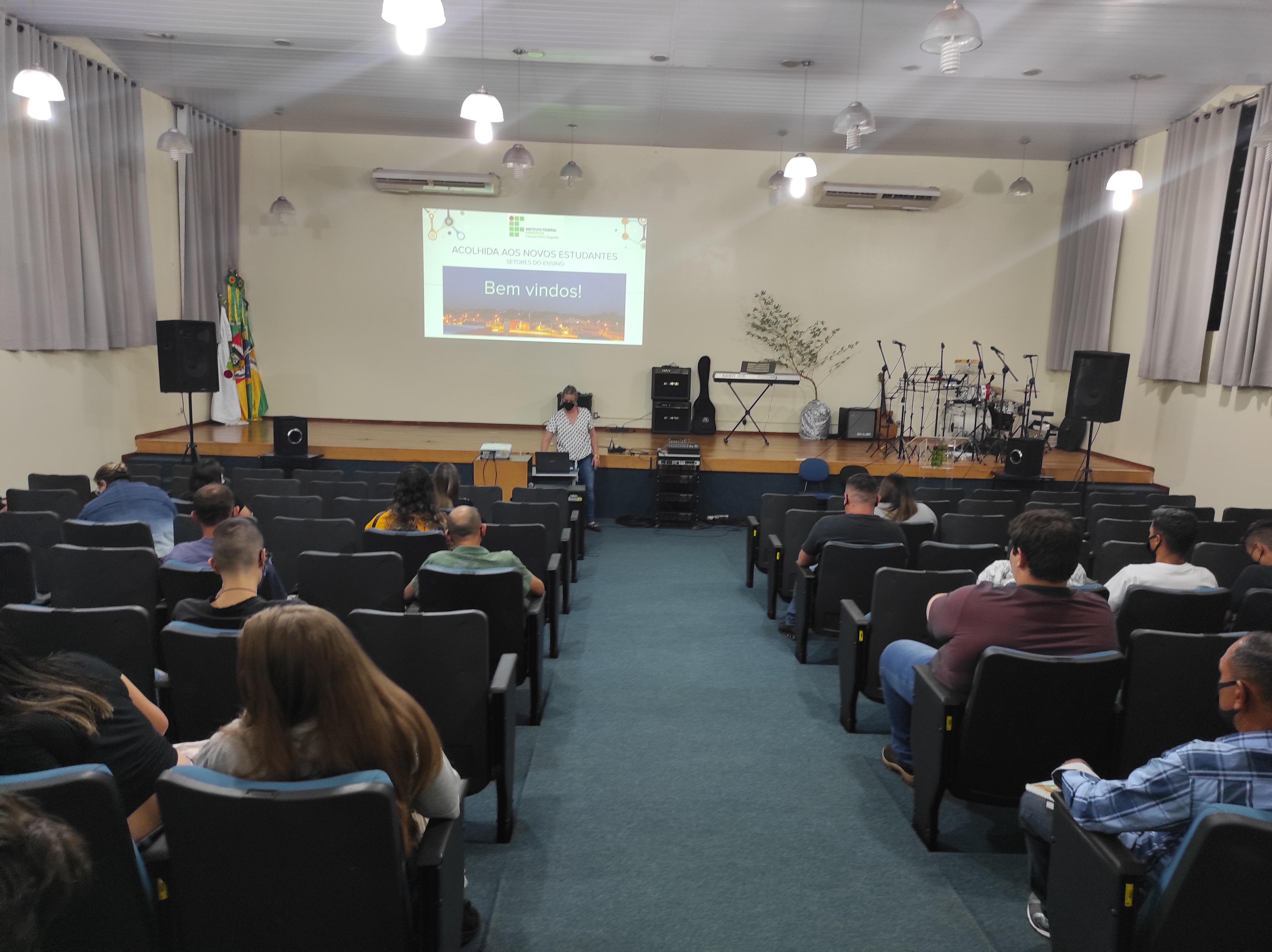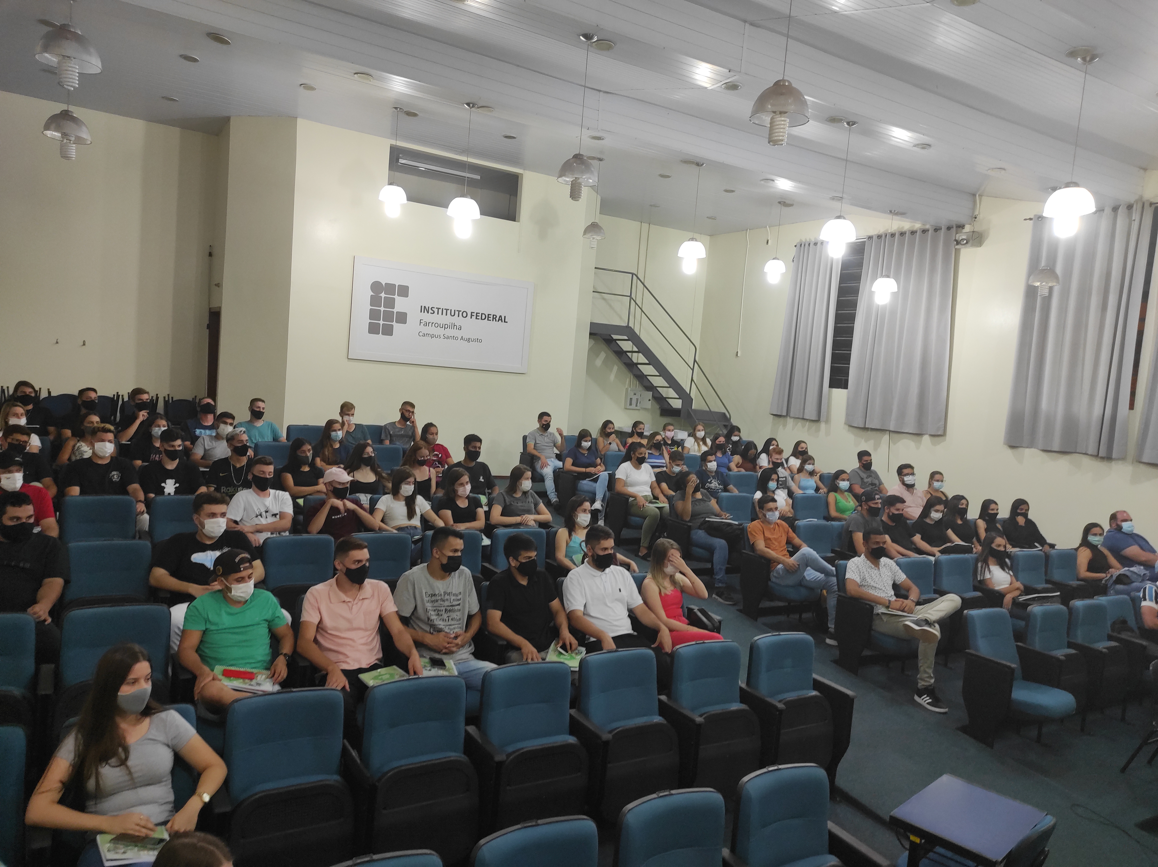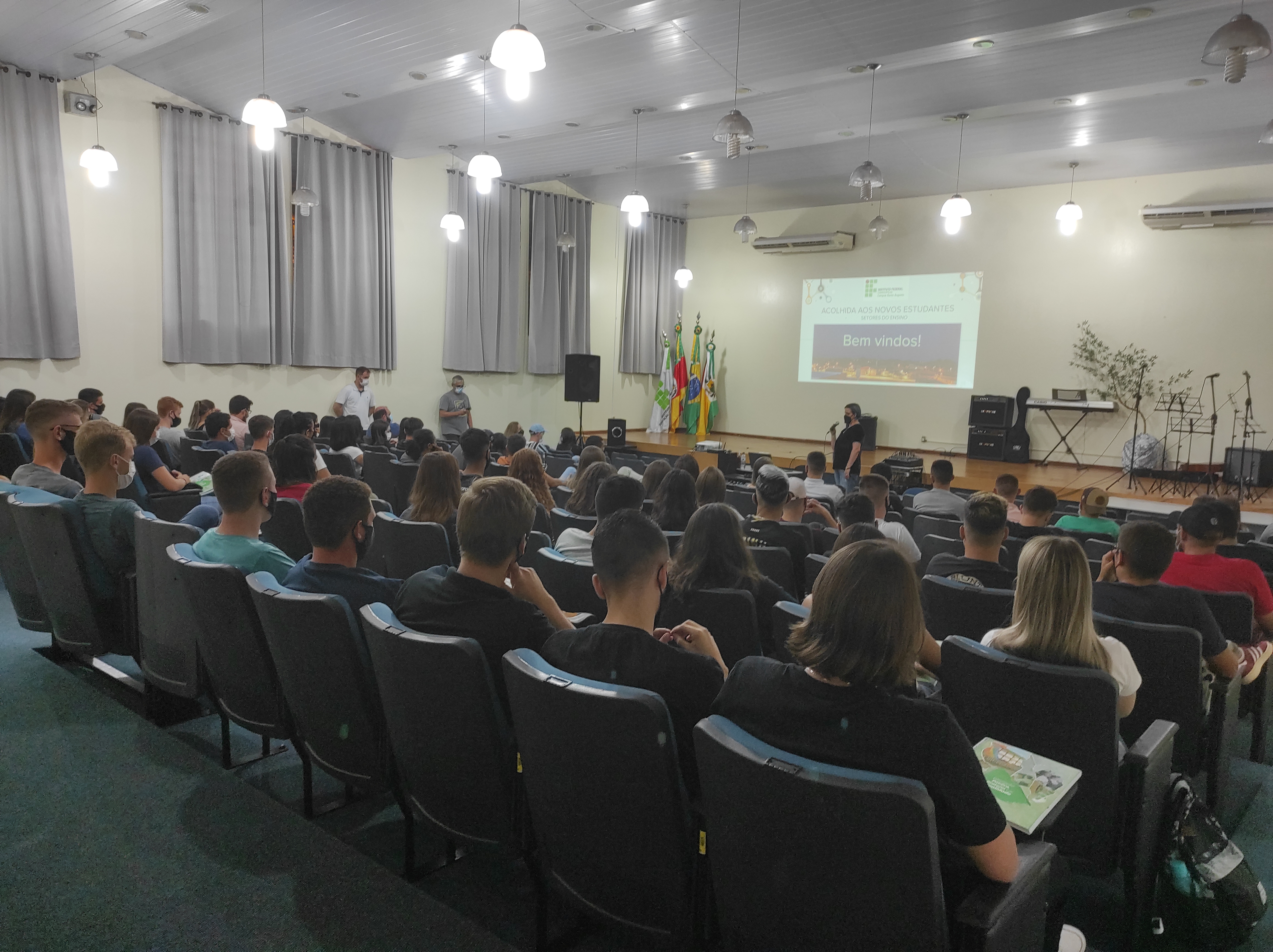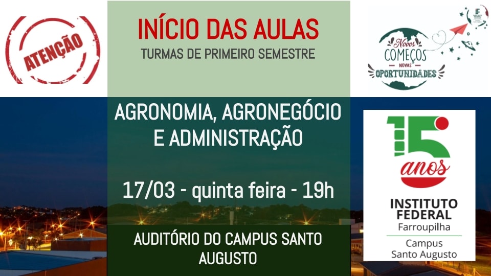 O IFFar – Campus Santo Augusto recebeu no dia 17 de março, no auditório da instituição, às 19h, os ingressantes nos cursos superiores de Bacharelado em Administração e Bacharelado em Agronomia e de Tecnologia em Gestão do Agronegócio. Os ingressantes aguardavam a conclusão da confirmação de vaga da primeira chamada do processo seletivo, sendo que somente estes 3 cursos tiveram 20 alunos confirmados ou mais e puderam iniciar as atividades.