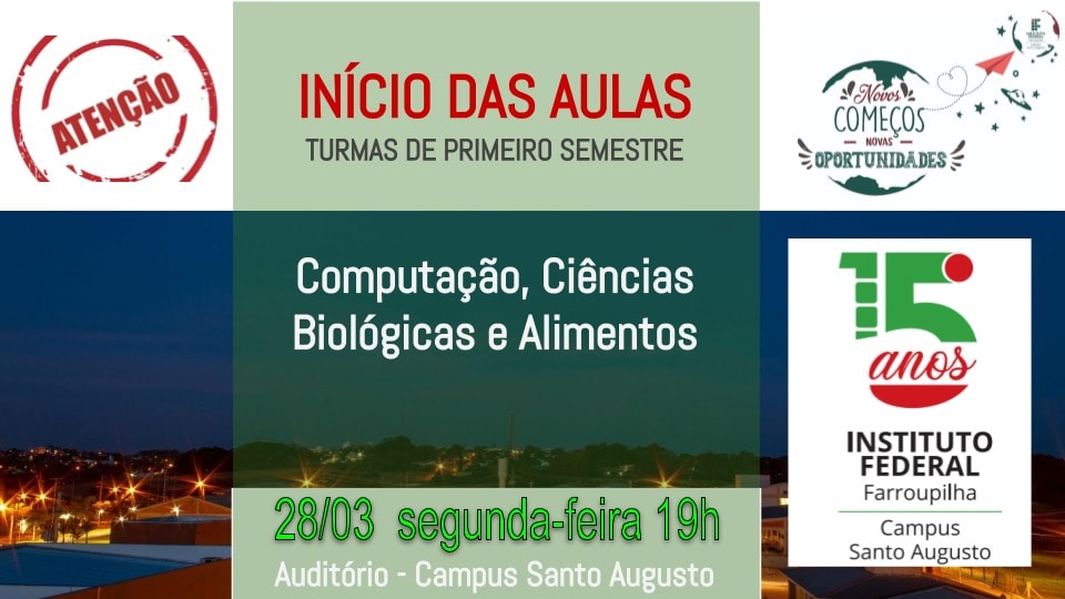 Os cursos de Licenciatura em Ciências Biológicas, Licenciatura em Computação e Tecnologia em Alimentos tiveram que aguardar o encerramento do processo seletivo simplificado de preenchimento das vagas remanescentes para poderem inciar as aulas. As turmas foram recebidas na segunda-feira, dia 28 de março, às 19h, no auditório da instituição.