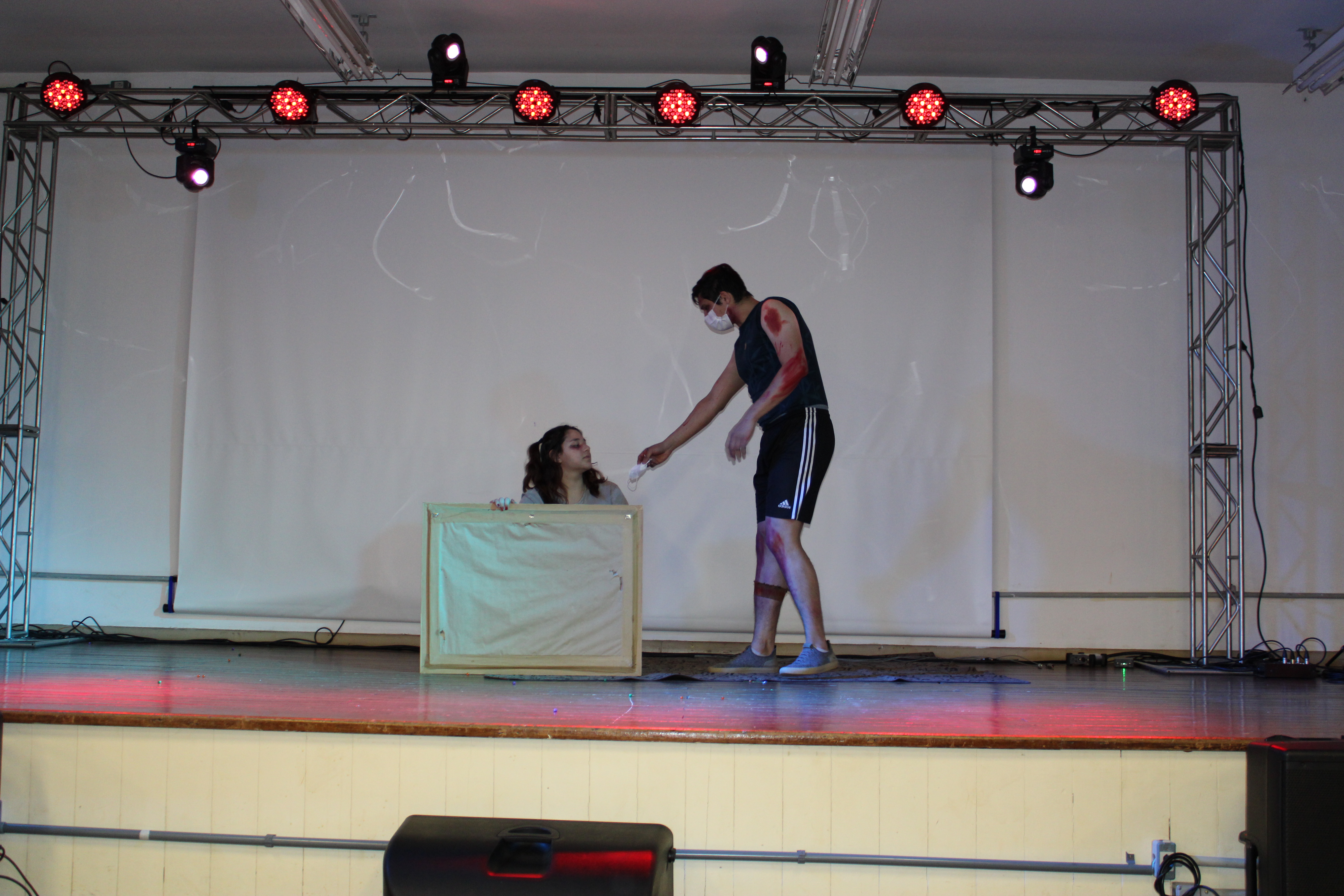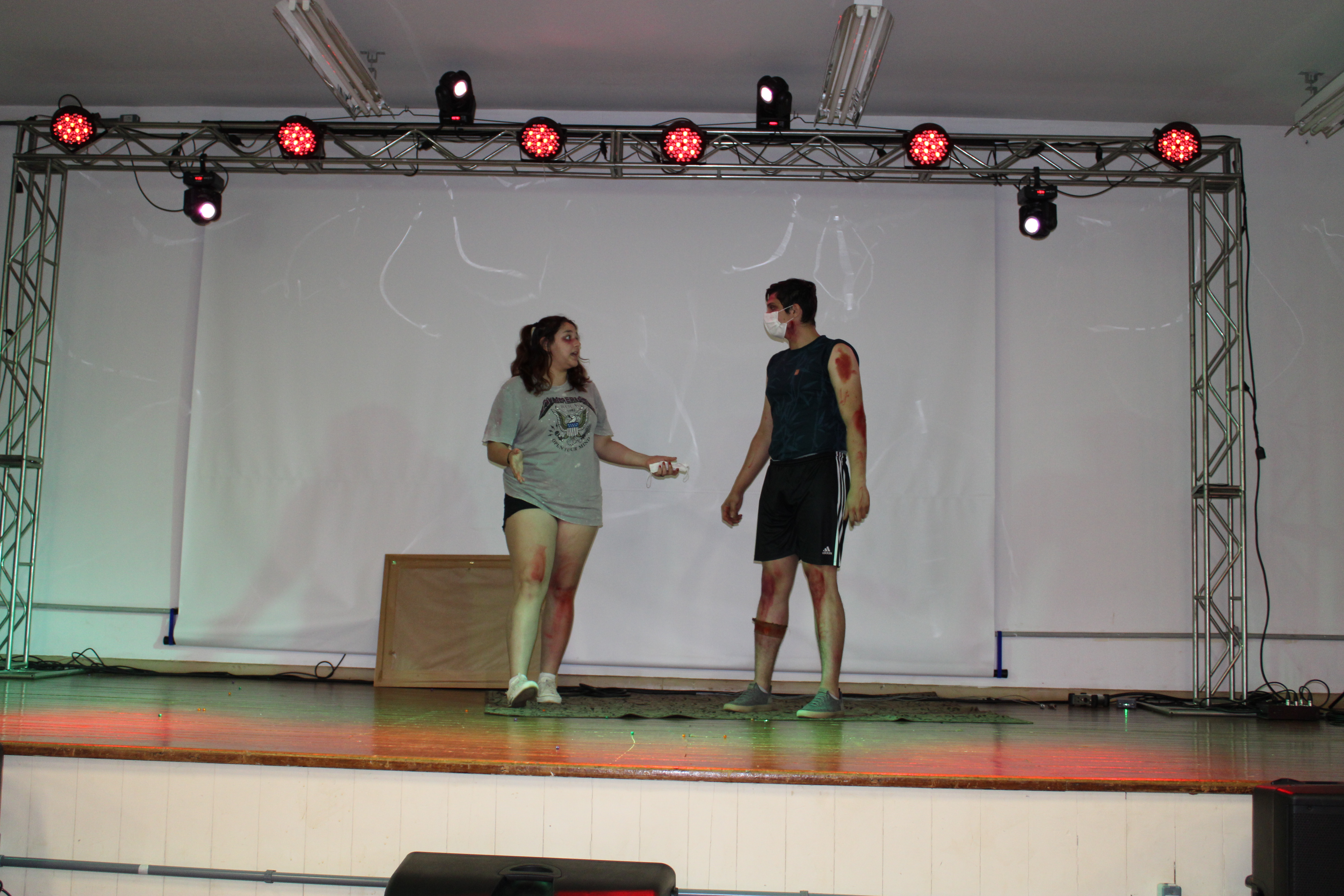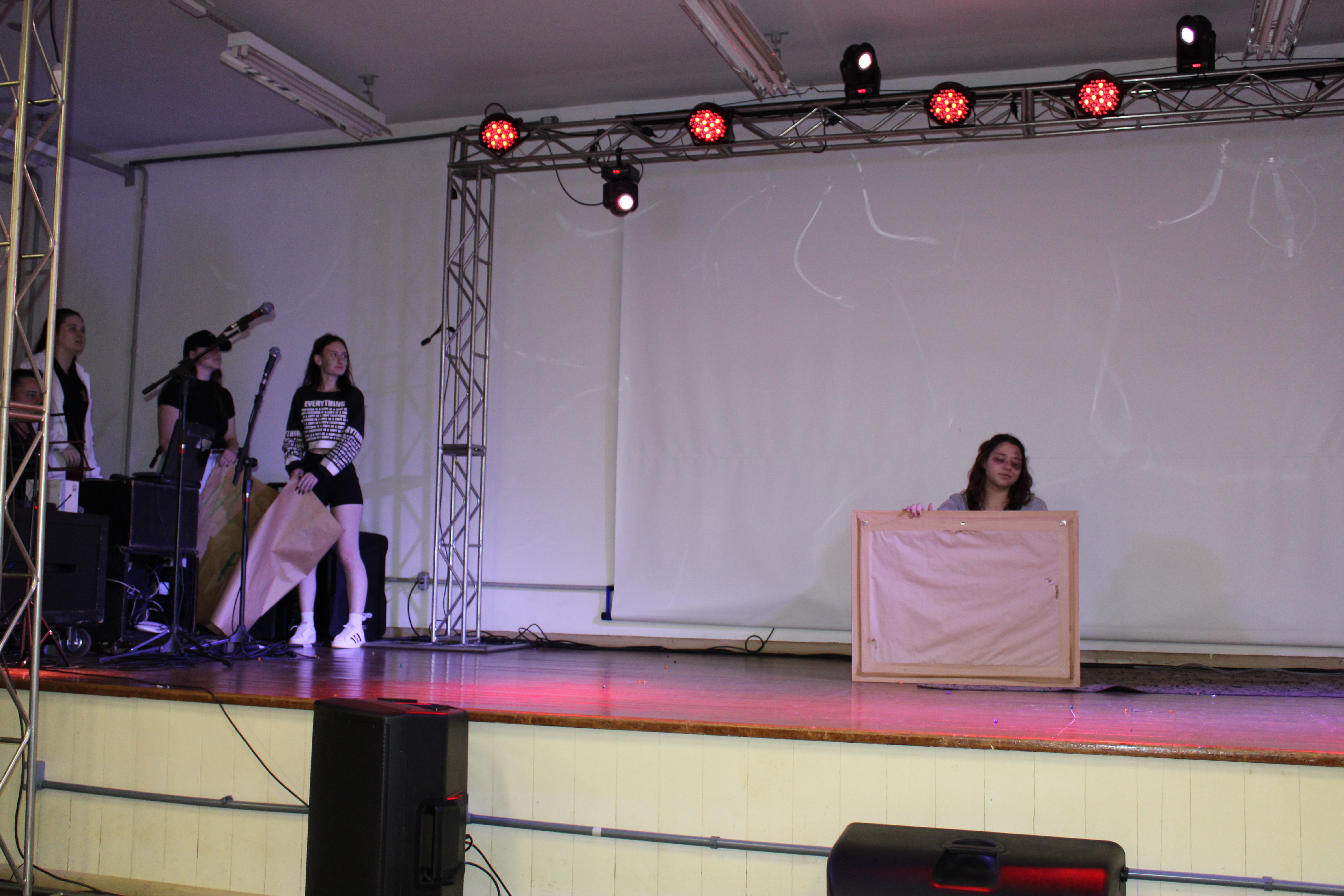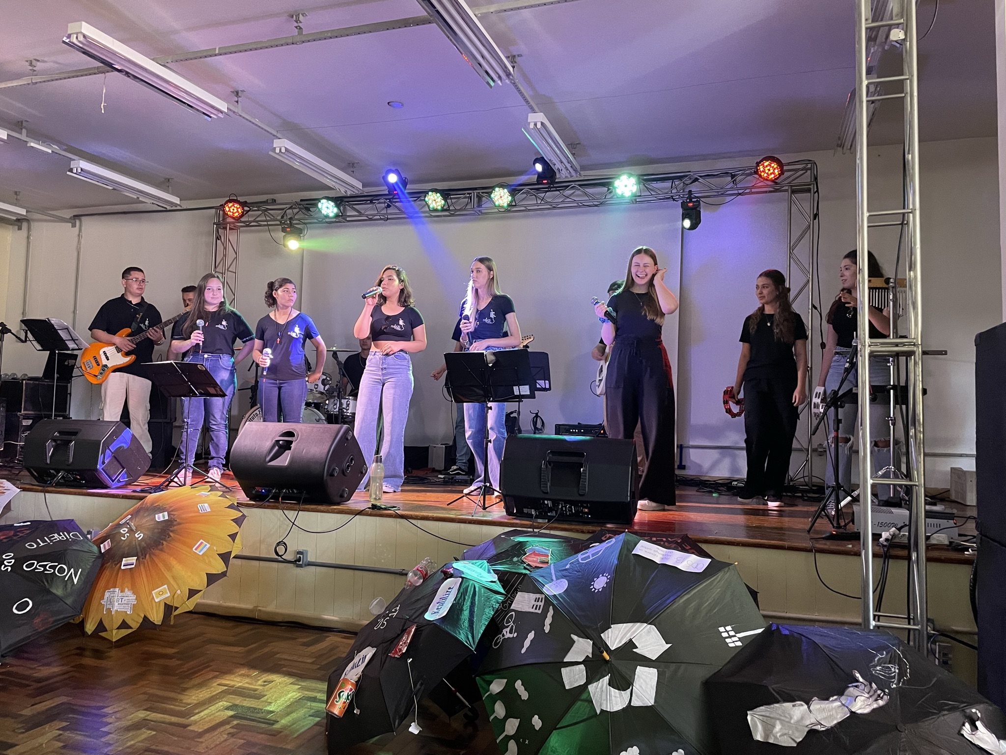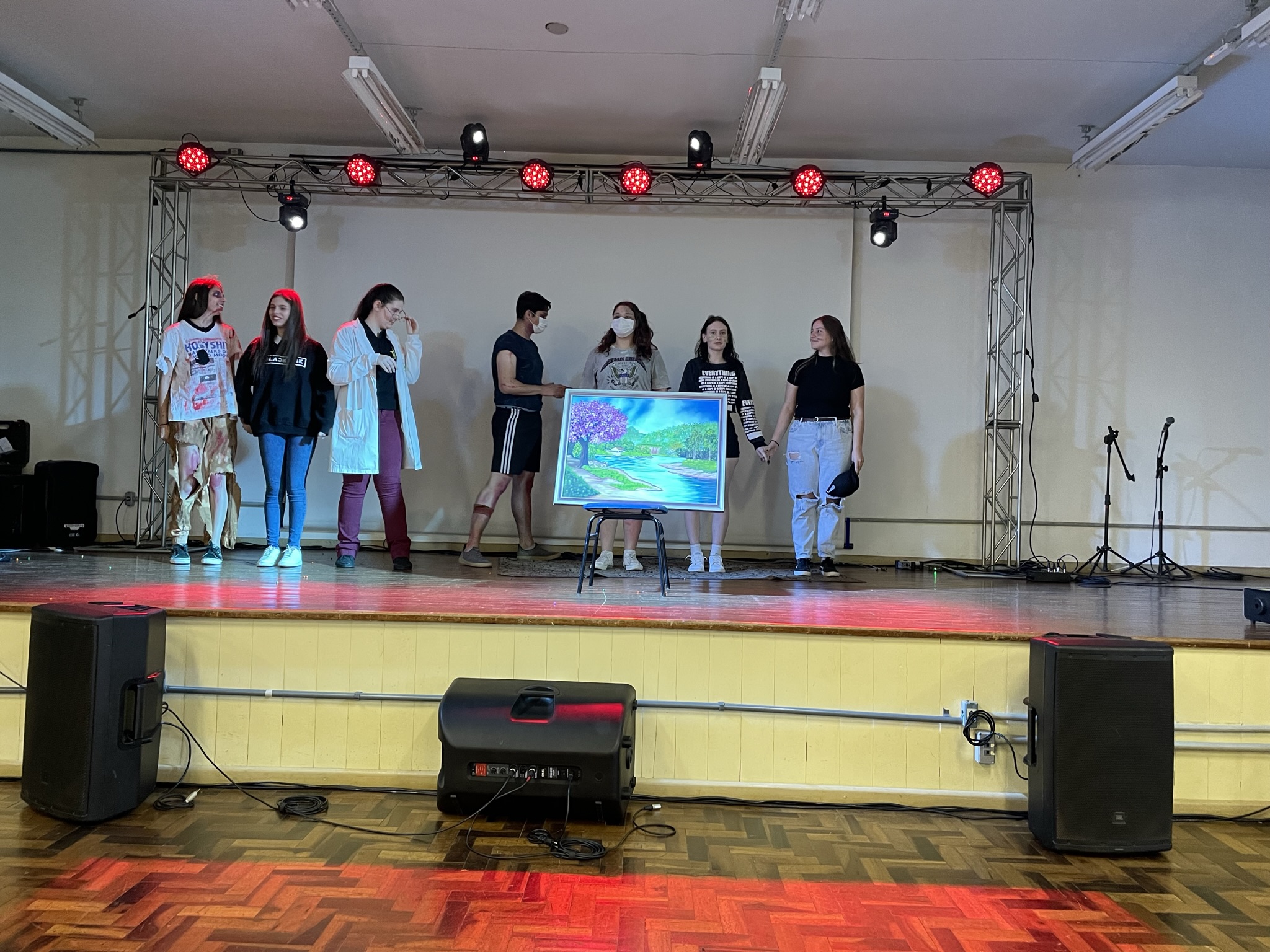 *Categoria Manifestações Teatrais - os estudantes do 3º ano do técnico em Alimentos, William Rafael Rodrigues, Sabrine Speroni, Júlia Nery de Melo, Ana Julia Probst, Isadora Beatris Preuss, Kassia Rohr dos Santos, Sabrina Caetano Lourenço e Bernardo Owergor Rodrigues Nazaroff, apresentaram a peça “Erros do passado, sombras do futuro?”, produzida sob orientação da professora Téoura Benetti;
