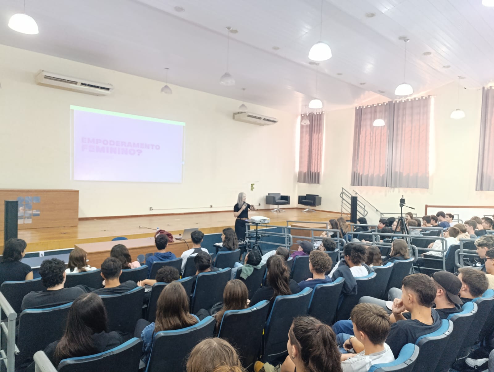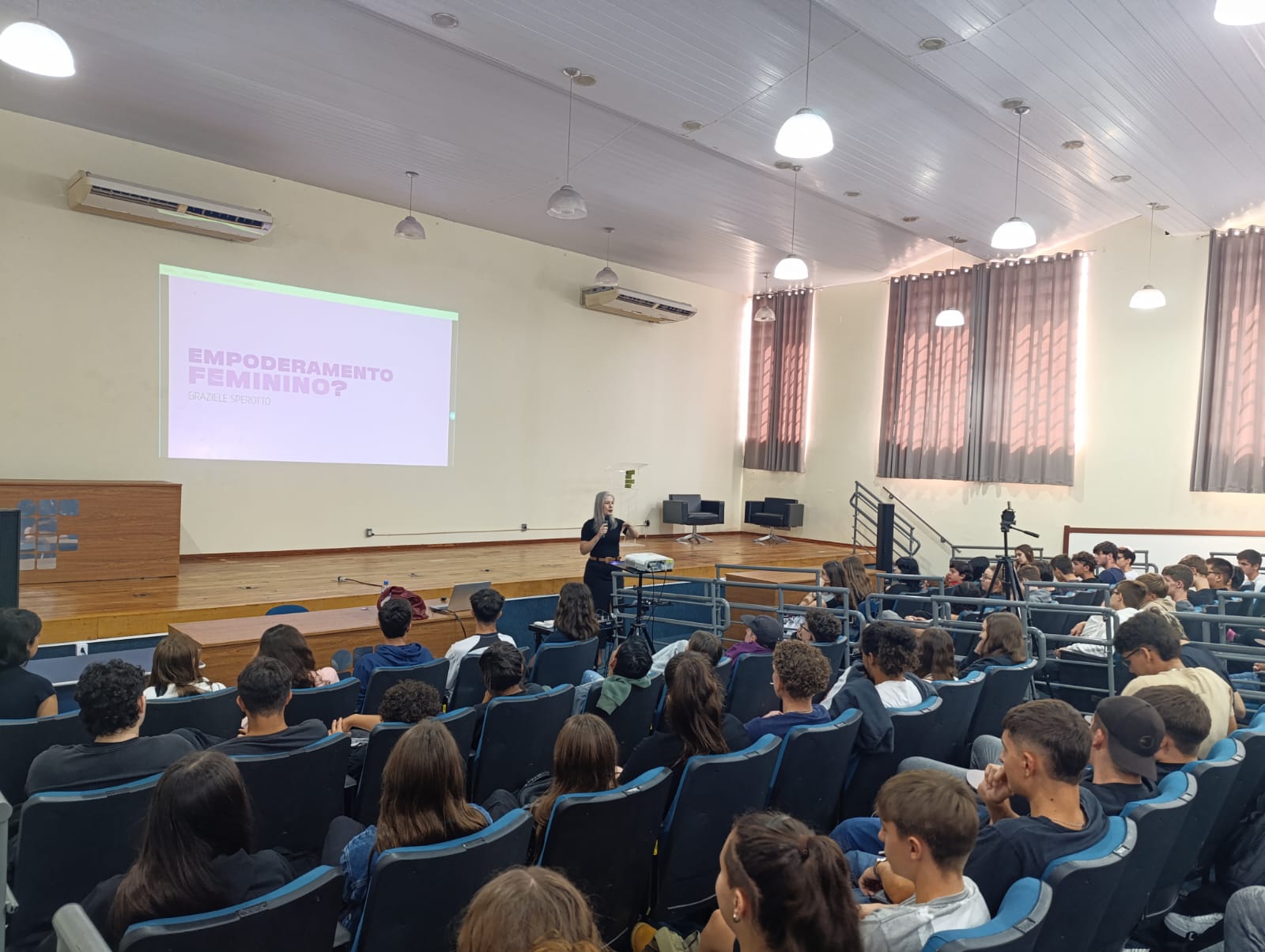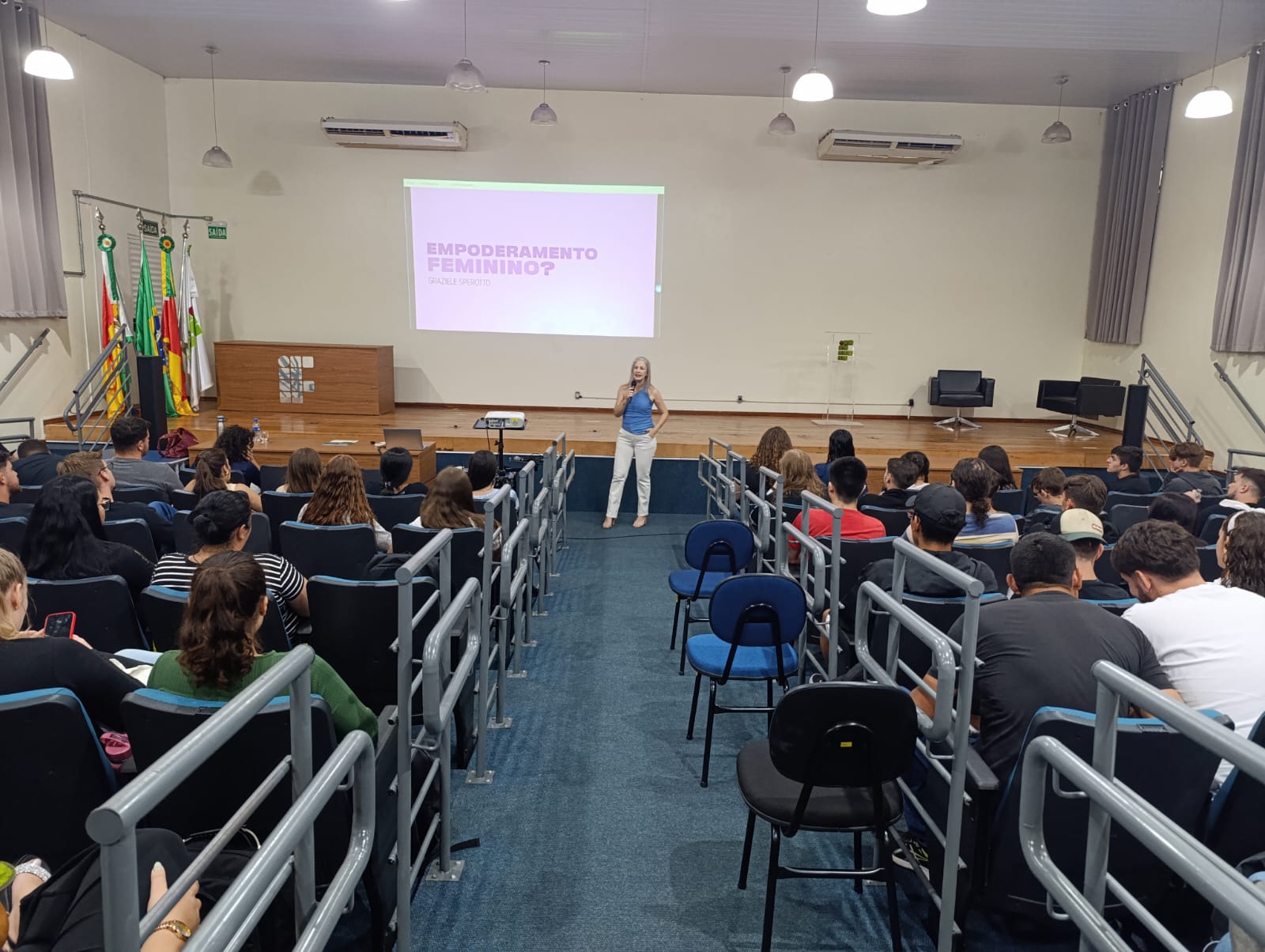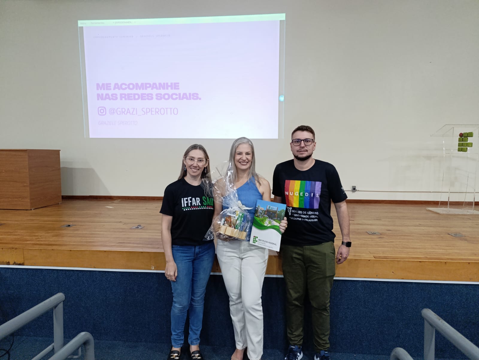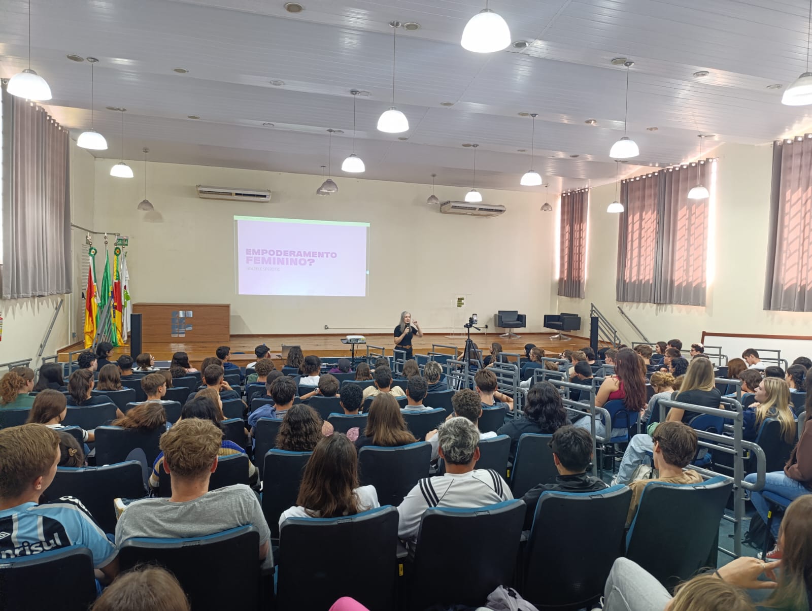 O Núcleo de Gênero e Diversidade Sexual do IFFar – Campus Santo Augusto – NUGEDIS, promoveu na última sexta-feira, dia 28 de março, as 10h, no auditório da instituição, uma palestra com a publicitária e criadora de conteúdo digital, Grazieli Sperotto, sobre Empoderamento Feminino, com a participação dos estudantes dos 1º anos dos cursos técnicos integrados ao ensino médio e os 2ºs anos do técnico em Administração e de Alimentos.