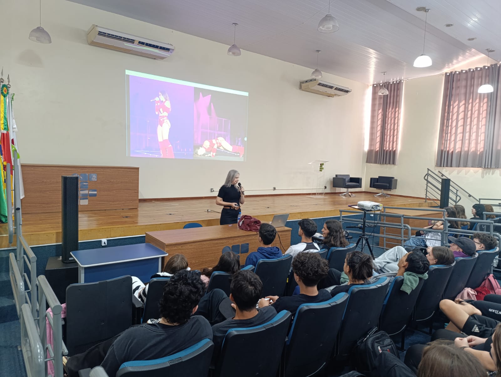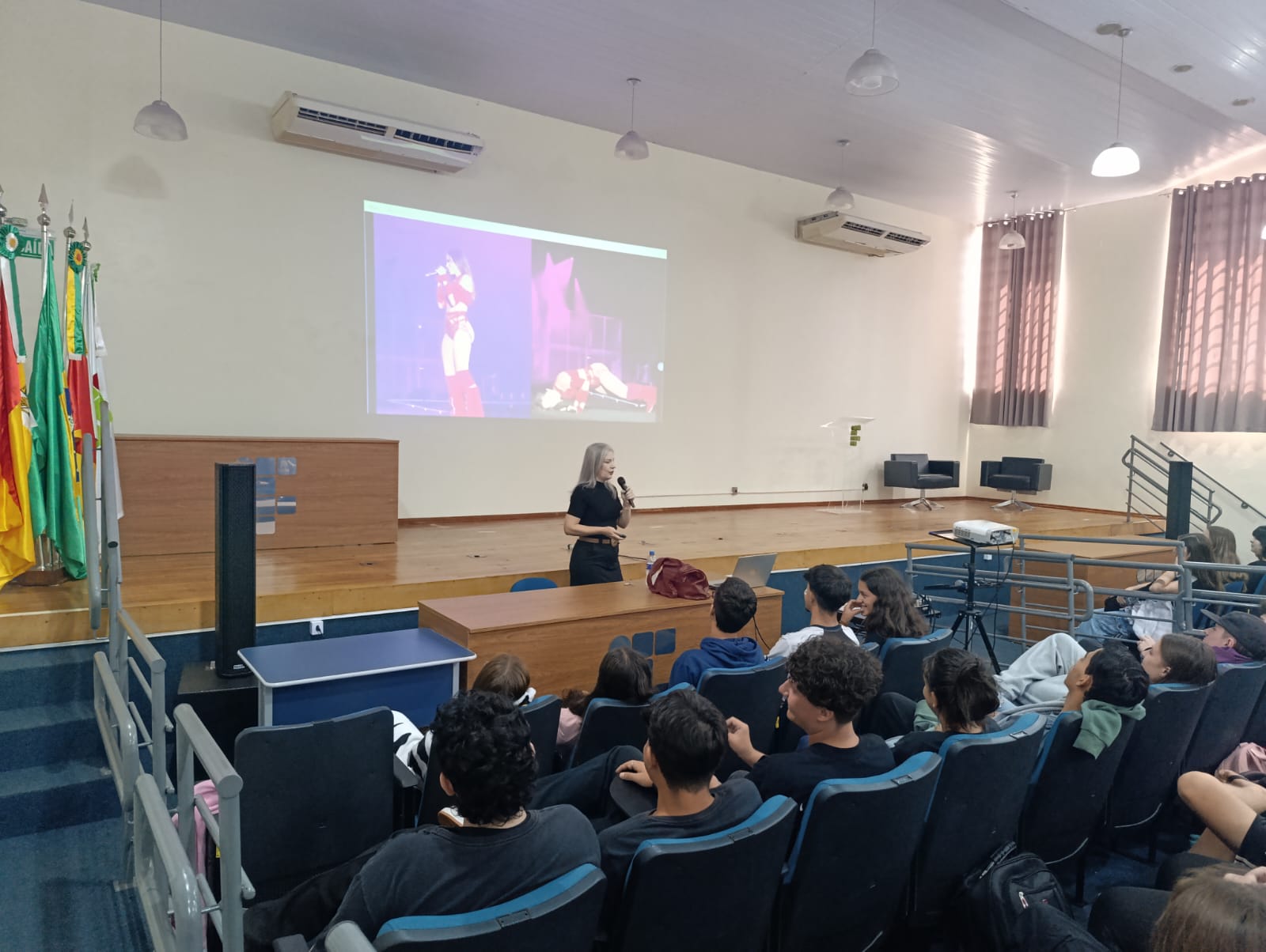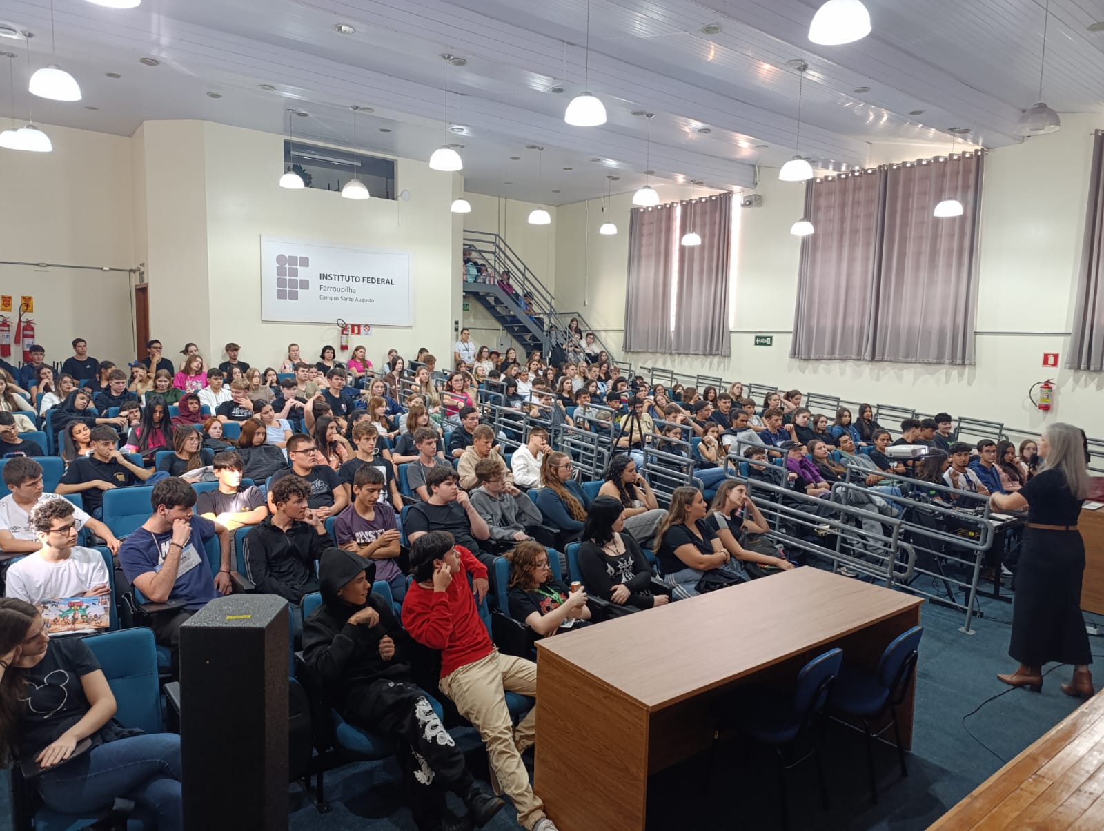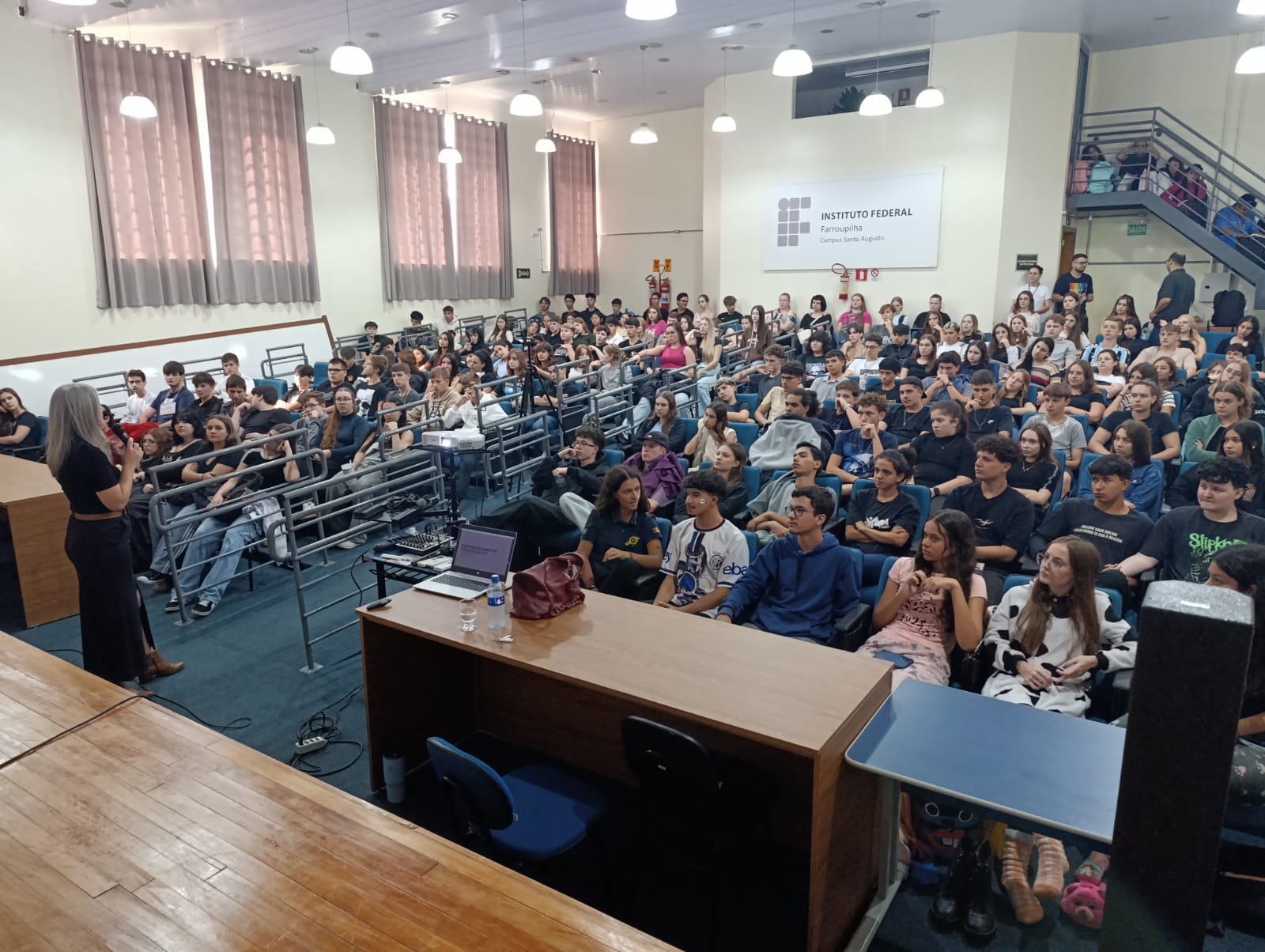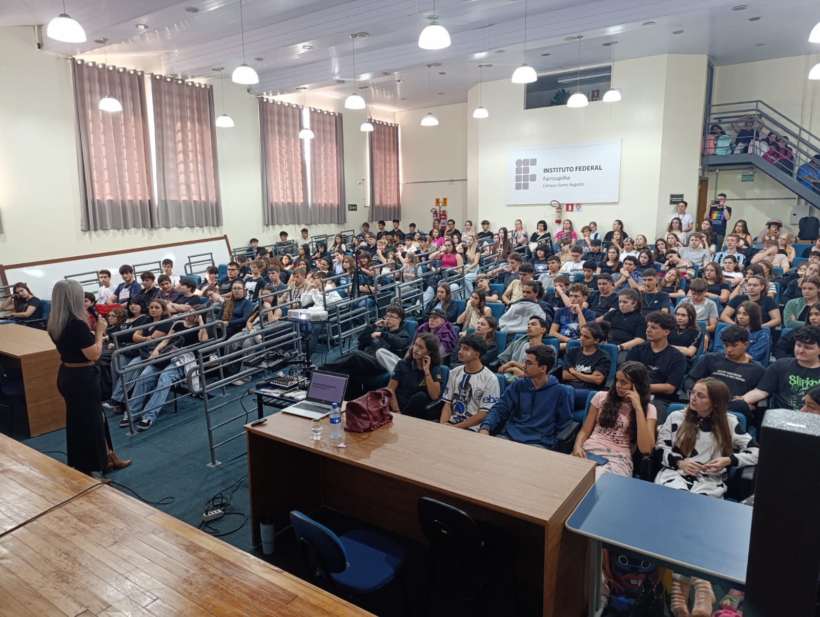 O Núcleo de Gênero e Diversidade Sexual do IFFar – Campus Santo Augusto – NUGEDIS, promoveu na última sexta-feira, dia 28 de março, as 10h, no auditório da instituição, uma palestra com a publicitária e criadora de conteúdo digital, Grazieli Sperotto, sobre Empoderamento Feminino, com a participação dos estudantes dos 1º anos dos cursos técnicos integrados ao ensino médio e os 2ºs anos do técnico em Administração e de Alimentos.