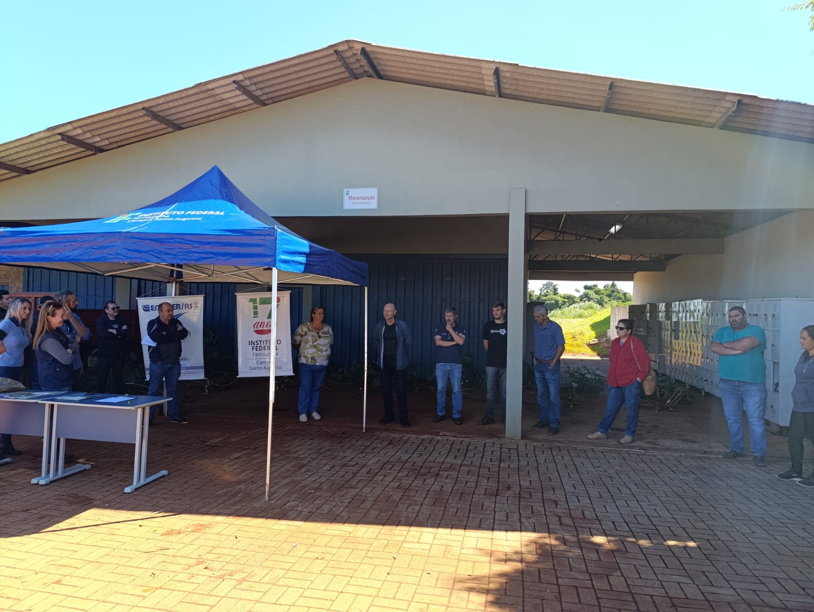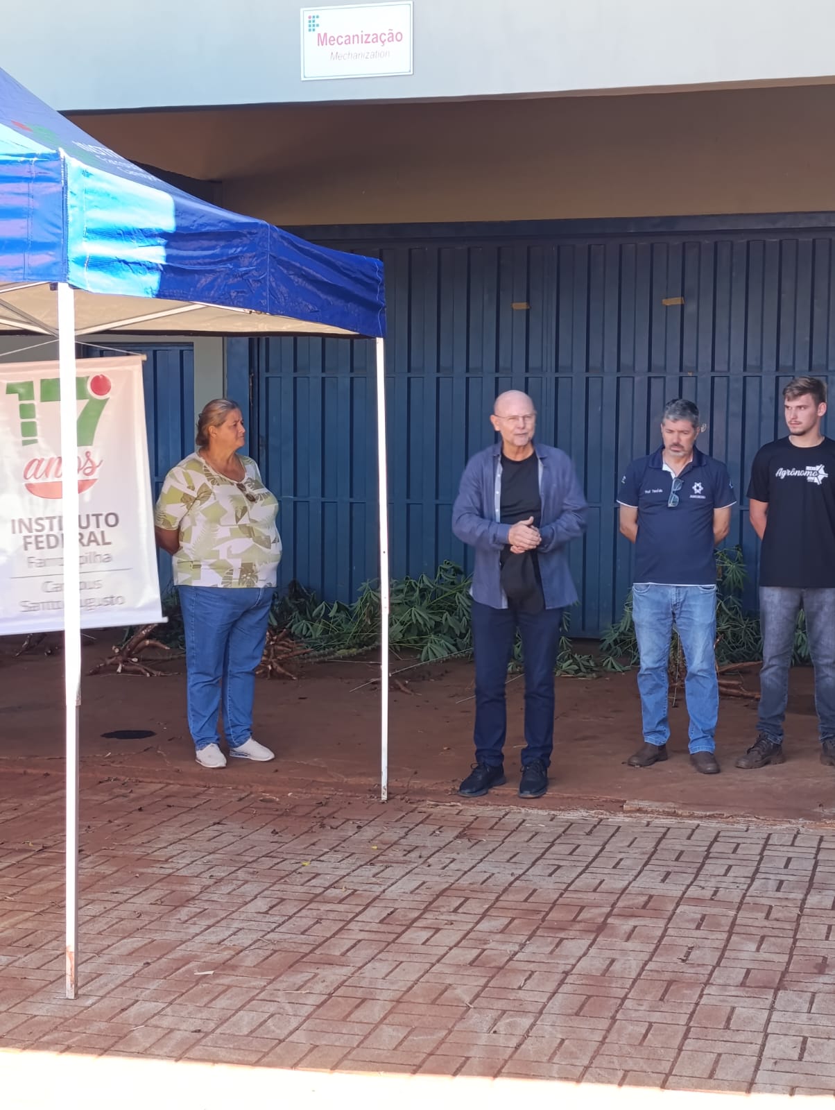 O evento conduzido pelo professor Tarcísio Samborski, contou com a participação do Deputado Federal do PT, Elvino Bohn Gass; da Diretora Geral do IFFar – Campus Santo Augusto, Márcia Fink; do Diretor de Pesquisa Extensão e Produção, Ricardo Paraginski; do Secretário Municipal de Desenvolvimento Econômico e Meio Ambiente de Santo Augusto, Paulo Tonetto de Moura; da Chefe do Escritório local da Emater, Elisa Volpatto Schindler, acompanhada pelo Engenheiro Agrônomo, Dhonathã Rigo e a Técnica em Agropecuária, Estefânia Van Groll Ferreira; do Vice Prefeito de Vista Gaúcha, André Danetti; do prefeito de Miraguaí, Leonir Hartk, acompanhado pelo Secretário de Agricultura, Ivonir Botton e por Regis Hardt, proprietário da Agroindústria de mandioca de Miraguaí.